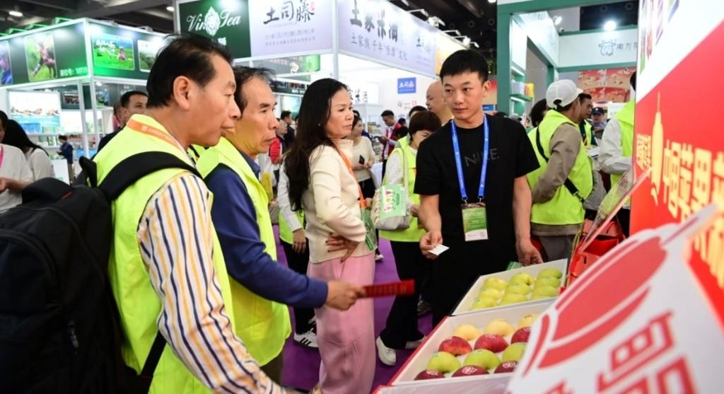 在旬邑秦脆苹果展区,人头攒动、热闹非凡。一颗颗果面光洁、红晕饱满的秦脆苹果格外吸睛,浓郁果香扑面而来。与会嘉宾争相拿起果品观察、品尝,脆嫩的果肉、清甜的汁水赢得一致好评。