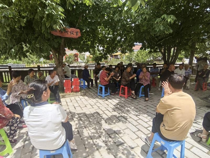 梭椤村内岔路口的一片闲置空地,村民时常在此聚集闲聊、闹磕。有一天,村民张大爷说“得有个能遮风挡雨的地儿歇脚”,李婶也说“邻里有小矛盾,在这儿说开了多好”。村干部也跟着搭话:“要是能听大伙儿说说难处,咱们工作也能更实在!”于是,大伙儿一致认为应建设一个既能遮风避雨、又能促进交流的议事场所。随即,依托“众议留声”平台,“和为贵议事亭”应运而生,其名寓意“以和为贵”,成为村民日常交流、化解矛盾、共商村务的重要阵地。