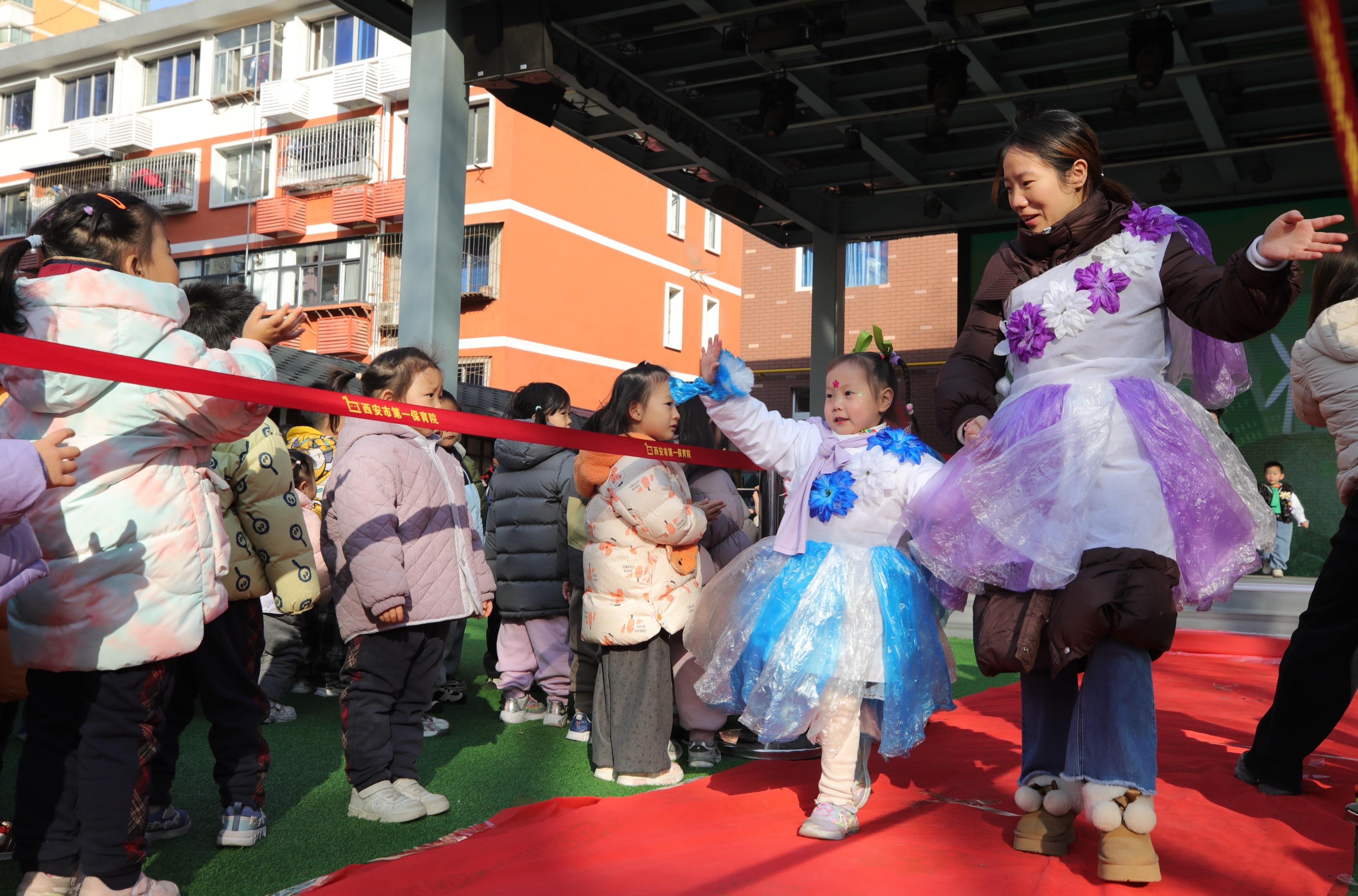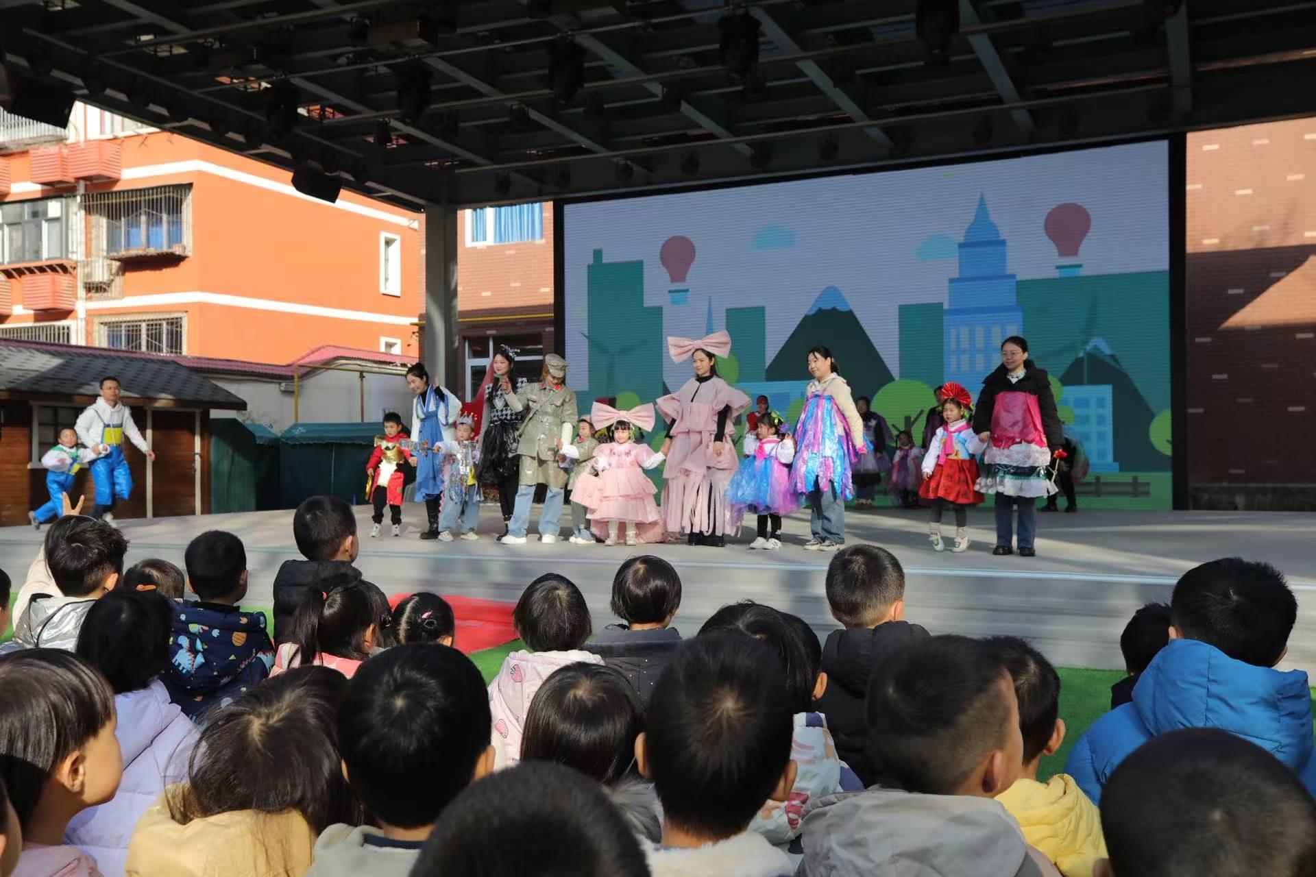 快板舞蹈表演结束后,创意环保走秀精彩亮相,成为活动最大亮点。参与走秀的幼儿和家长代表,将家中闲置的塑料袋、纸箱子、饮料瓶等废旧物品充分利用,经过精心裁剪、拼接与装饰,制作成卡通人物造型、创意植物服装等特色服饰。孩子们身着亲手打造的环保服饰,迈着自信的步伐走上舞台,时而摆出可爱造型,时而与家长默契互动,每一套创意服饰都充满巧思,既展现了亲子合作的成果,更直观传递了“废物循环利用”的环保理念,现场氛围被推向高潮。