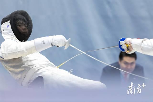 10日,轮椅击剑项目女子个人重剑C级金牌战打响。虽然是一场“广东德比”之战,广东省轮椅击剑队教练龙杰还是静静站在赛场边,盯着队员们的每一个动作。