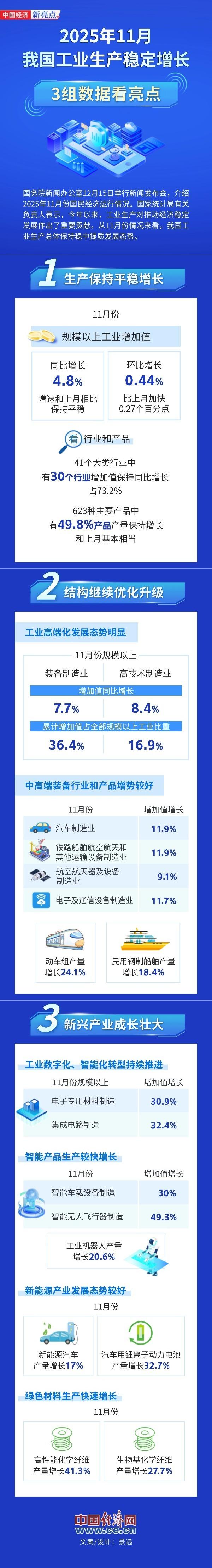 【图解】11月我国工业生产稳定增长,3组数据看亮点→
