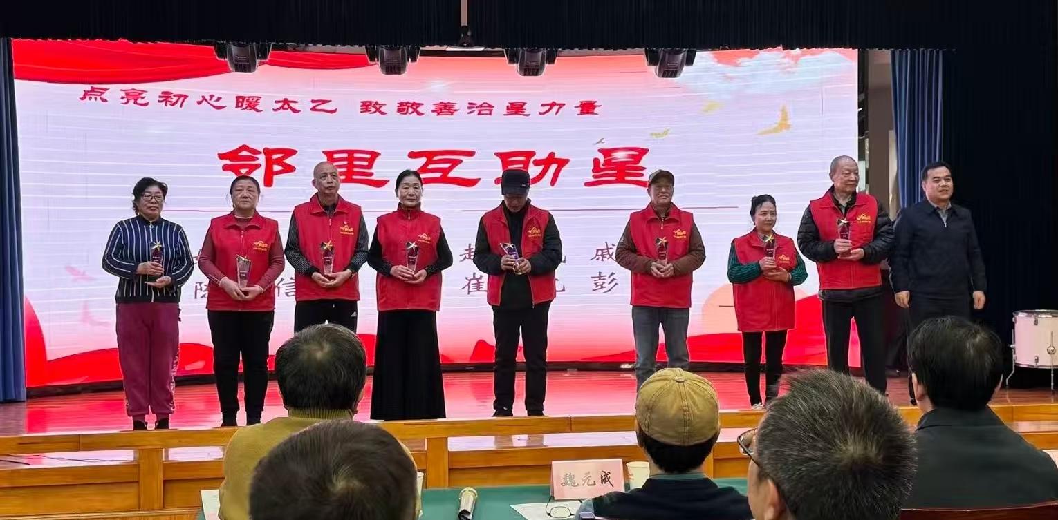 活动特别设置了“善治之星”表彰环节,分三轮为在社区治理、邻里互助、志愿服务、攻坚克难等方面表现突出的个人与团体颁发荣誉。红韵先锋星、邻里互助星、服务守护星、银龄智多星、攻坚克难星、共建赋能星、萤火志愿星……一颗颗“星”光闪耀,照亮了社区善治之路。他们之中,有长期参与政策宣传的党员骨干,有无私帮助邻里的热心阿姨,有默默守护社区安全的志愿者,还有在老旧小区改造中攻坚克难的带头人。他们虽来自不同岗位、不同年龄,却共同诠释着“奉献、友爱、互助、进步”的社区精神。