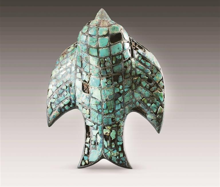 绿松石铜鸟饰。
