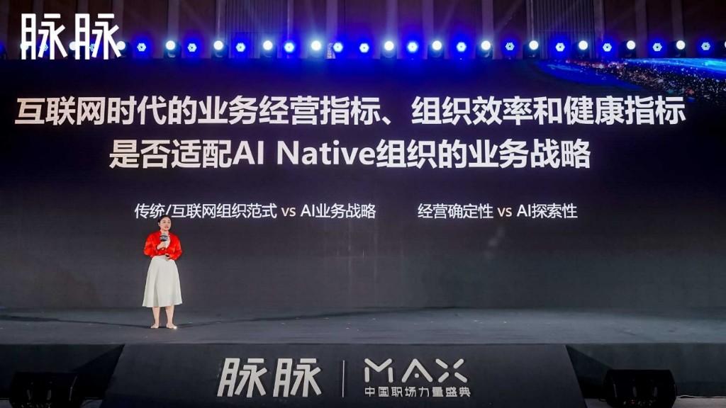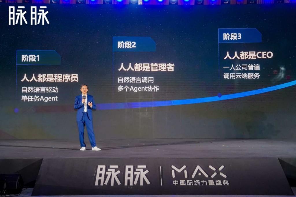 脉脉创始人兼CEO林凡在主题演讲中提出,AI将推动组织经历“人人都是程序员-人人都是管理者-人人都是CEO”三阶段演进。