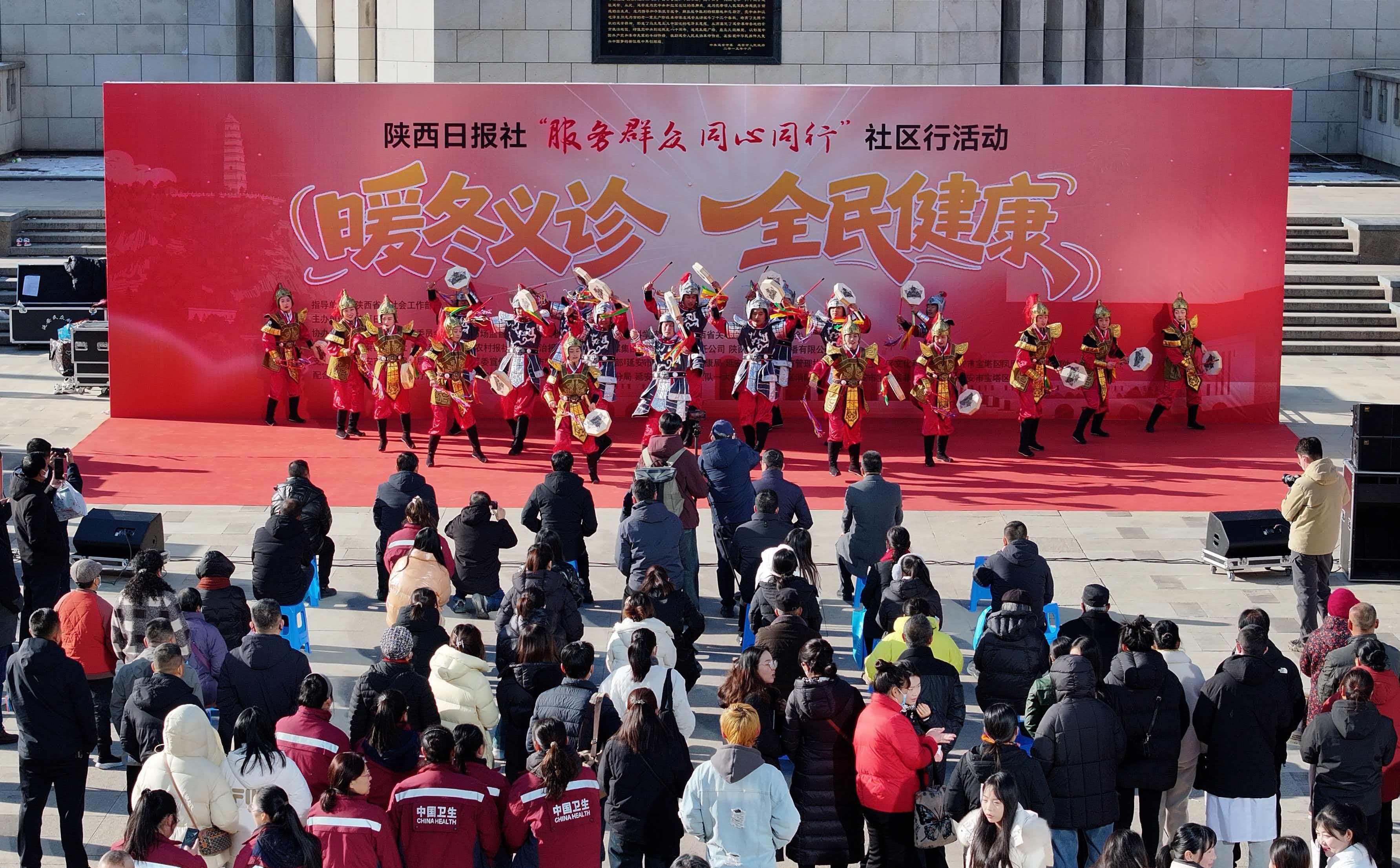三秦都市报-三秦网讯(记者 文晨 马昭)12月17日,陕西日报社“服务群众 同心同行”社区行活动在延安市宝塔区凤凰广场举行。此次活动以“暖冬义诊 全民健康”为主题,活动现场开展医保政策咨询、专家义诊、基础诊疗、疾病筛查等服务,同时还有反诈宣传、交规讲解、消防安全、急救技能教学、非遗宣传展示等活动,让群众在“家门口”享受实实在在的“一站式”服务。