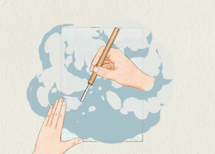 后由画师用墨线在瓷板上勾画出底稿