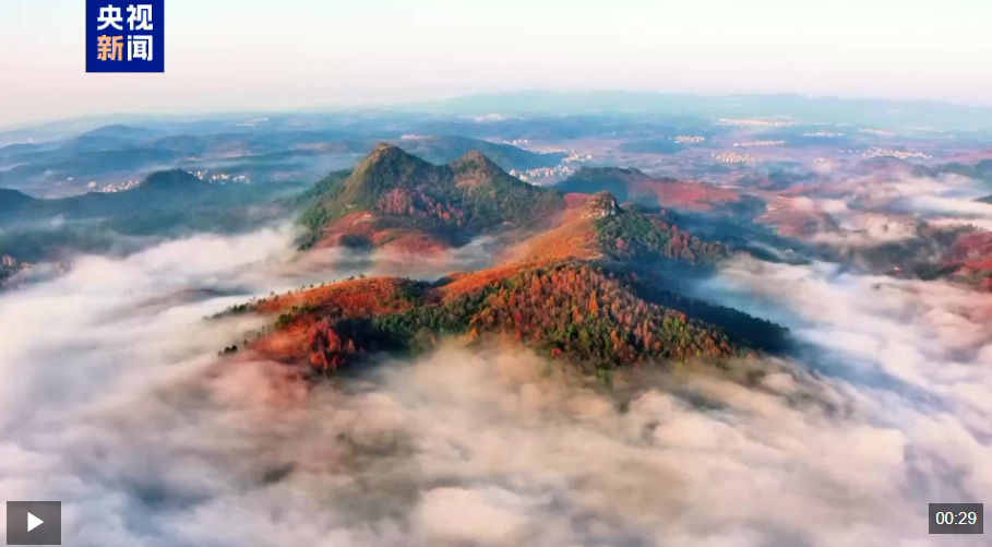 受寒潮天气影响,连日来,湖南永州新田县出现云海景观。漫山大雾将五彩斑斓的山林包裹,汇聚成波澜壮阔的云海,山峦在云浪翻滚中若隐若现,宛若仙境一般,形成一幅壮美的画卷。