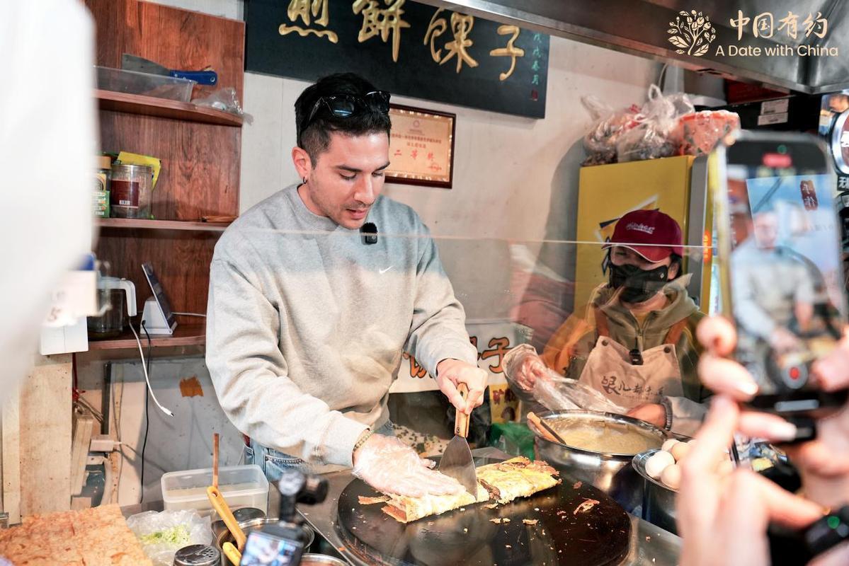 在古文化街,国际采访团的外国朋友们学习了捏泥人,体验了皮影戏表演,还亲手制作并品尝了正宗的天津煎饼,沉浸式感受了一把好吃又好玩的天津范儿。