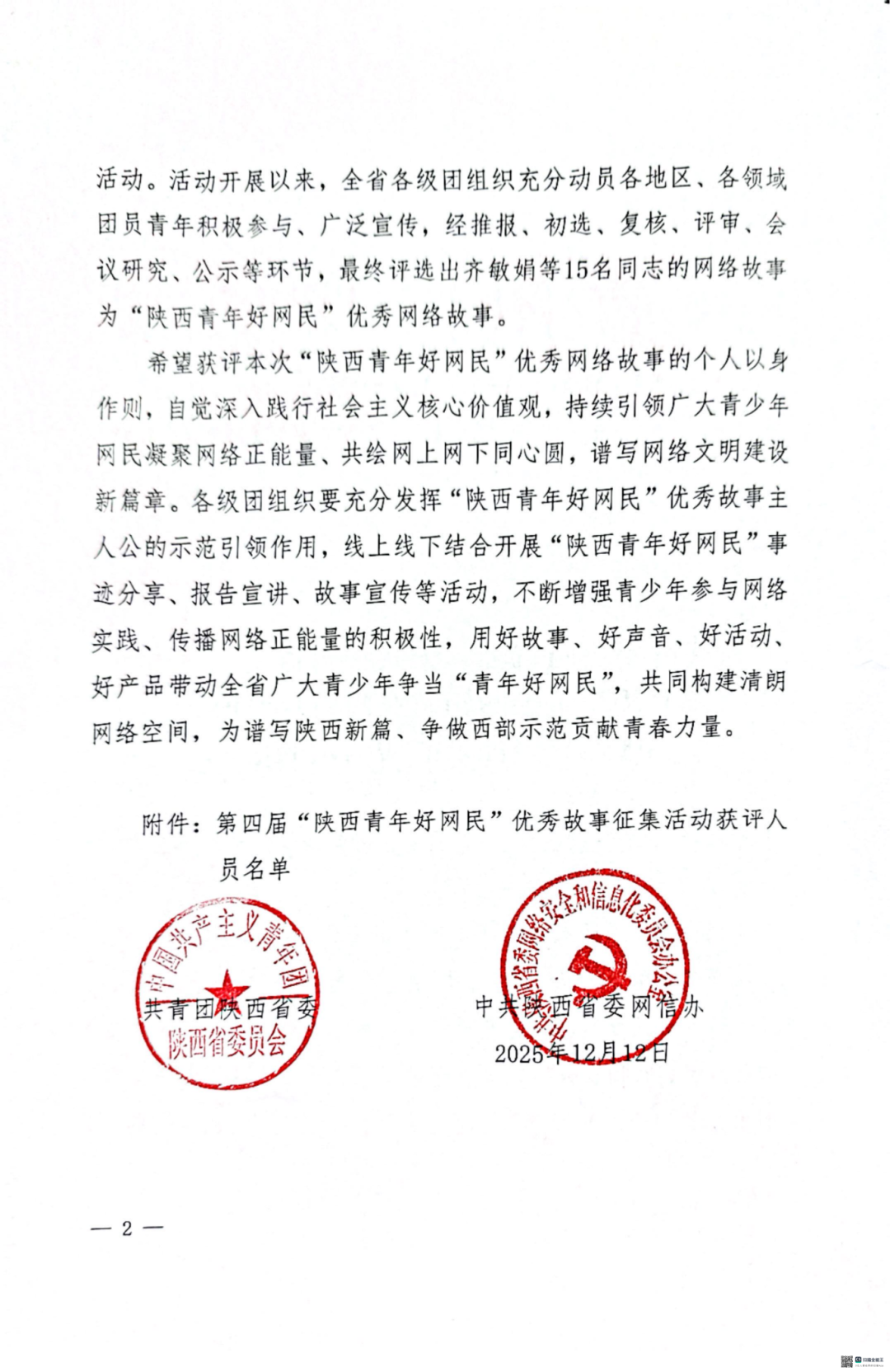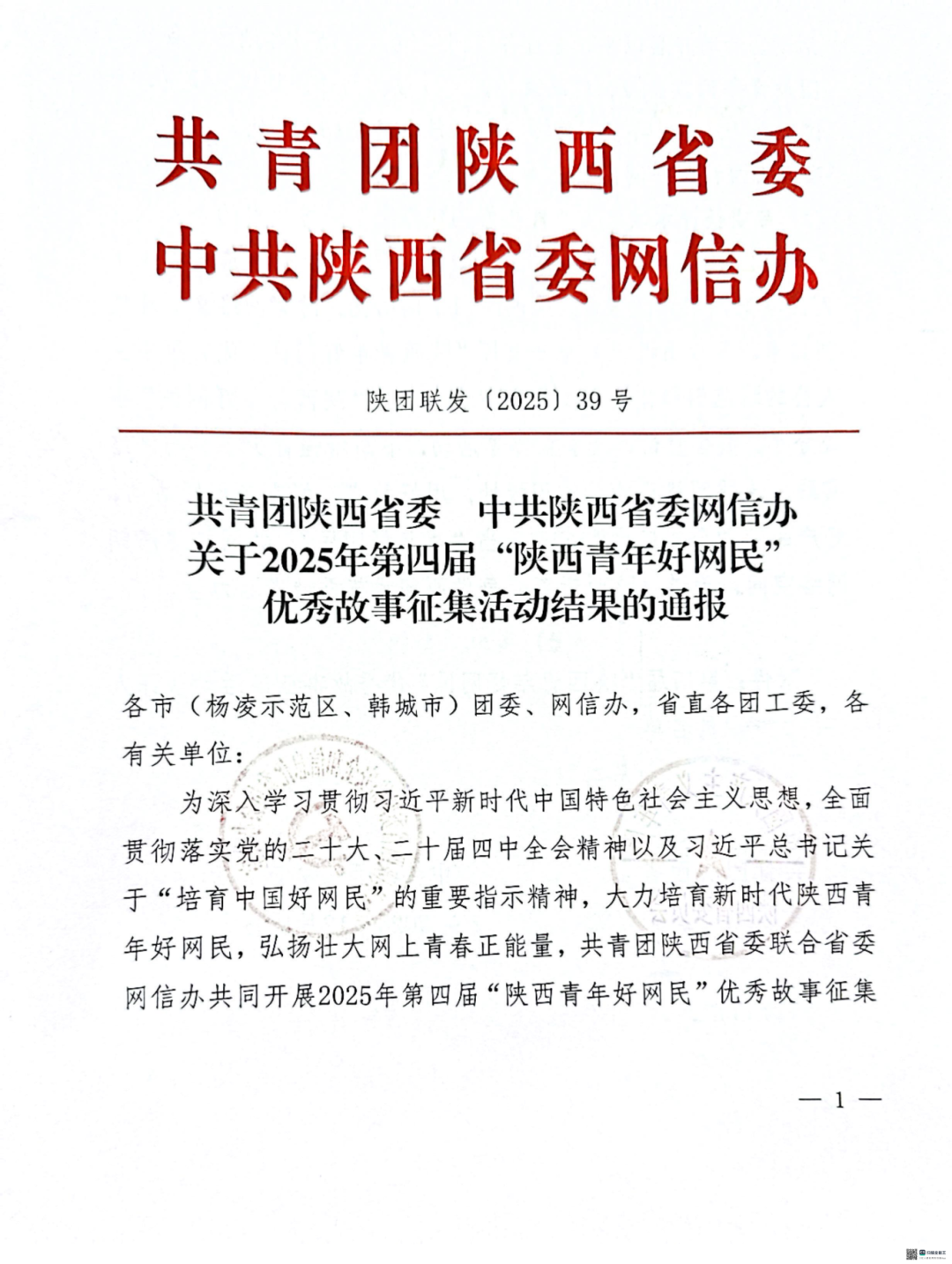 由共青团陕西省委联合省委网信办共同开展的第四届“陕西青年好网民”优秀故事征集活动