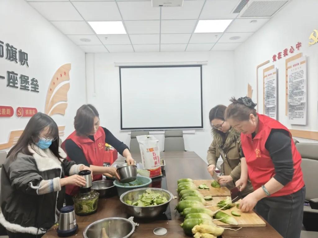 活动前一天,社区便已忙碌而有序。工作人员与热心志愿者早早投入筹备:新鲜蔬菜、优质肉馅整齐码放,大家分工协作,择菜、清洗、剁馅、调味,一丝不苟。空气中弥漫着食材的清香,也酝酿着对次日团圆时刻的期待。每一份馅料的精心调制、每一份爱心“外卖”的细致打包,都饱含着为居民送上“家的味道”的用心。