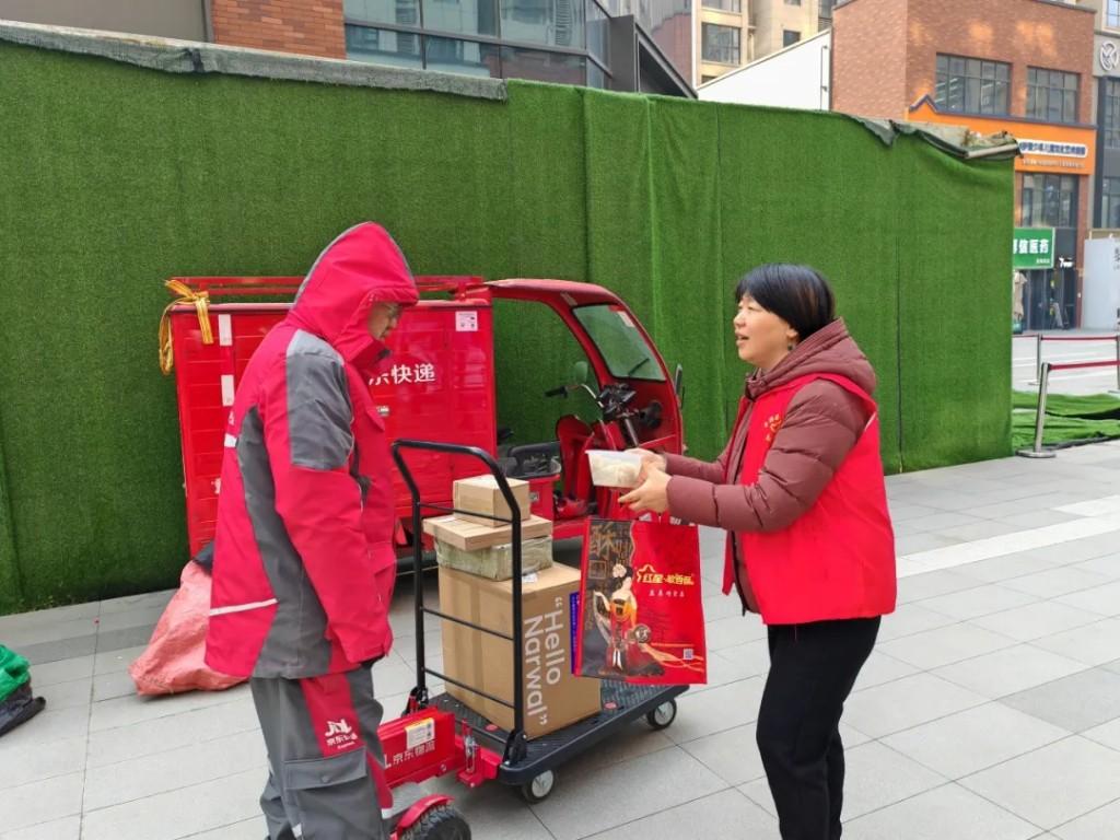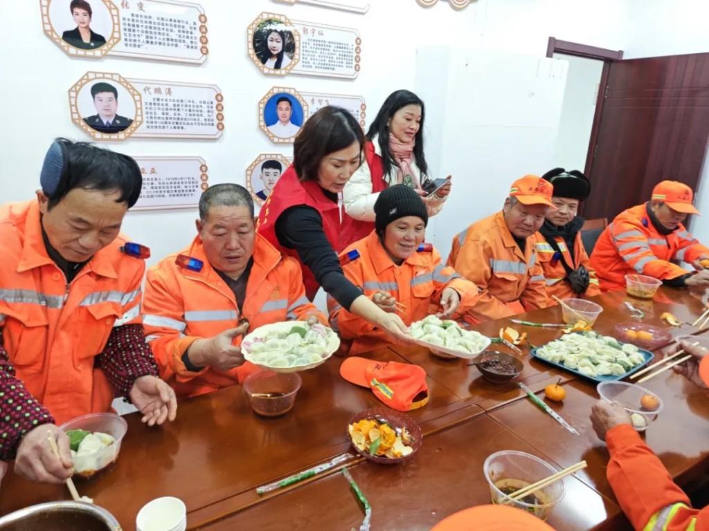 随着一锅锅热气腾腾的饺子出锅,香气四溢,社区居民、志愿者及辖区保洁员围坐共享美味。大家吃着香喷喷的饺子,脸上洋溢着幸福的笑容,现场洋溢着浓浓的团圆氛围。与此同时,另一份温暖正悄然送达——社区工作人员与志愿者将打包好的饺子送至行动不便的高龄老人家中,并走进快递驿站,为奔波在寒风中的快递小哥送上冬至问候。接过热腾腾的饺子,老人们连连道谢,快递小哥们也露出惊喜笑容,成为冬日里最动人的画面。