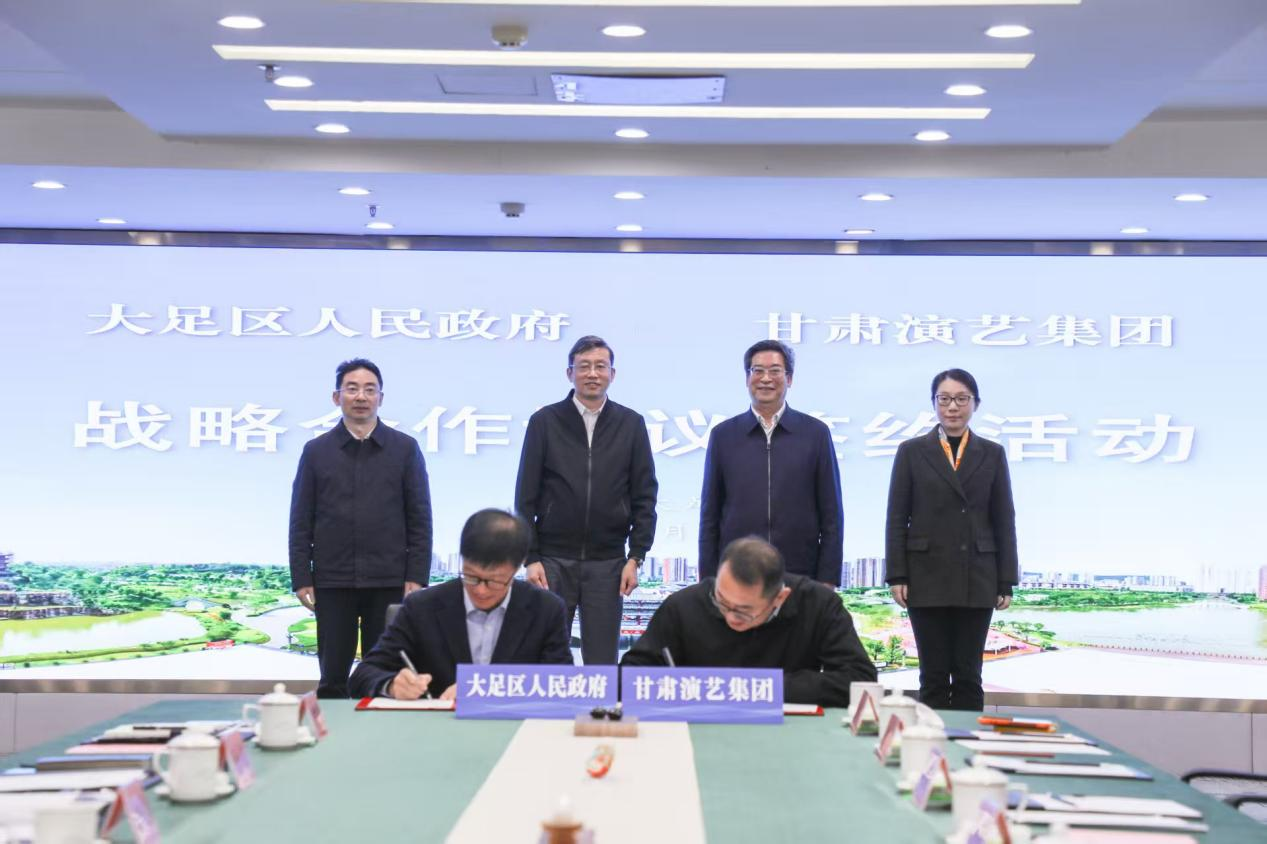 重庆市大足区区委副书记、区政府区长毛大春,区委常委、宣传部部长杨桦,区政府副区长尹道勇,甘肃演艺集团党委副书记、总经理杨焱等双方相关负责人,以及重庆文旅企业代表、媒体代表共同见证了签约仪式。