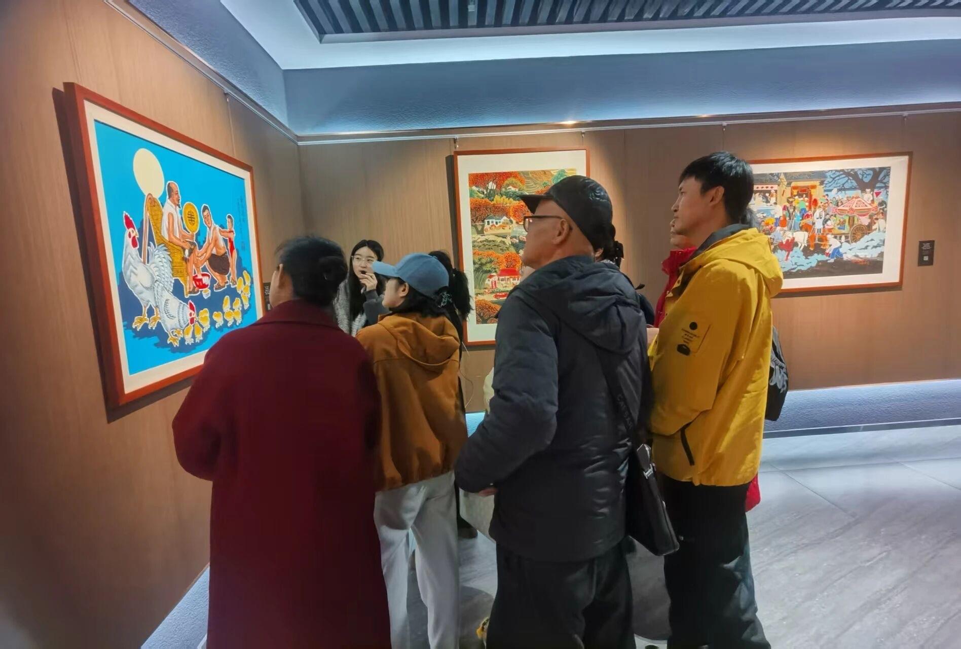 随后,大家参观了重要创作者白瑞雪、张青义的工作室和画展。在参观过程中,双方就农民画作品的创作构思、艺术手法、色彩搭配,以及产业状况、市场行情等方面展开了充分的互动交流。