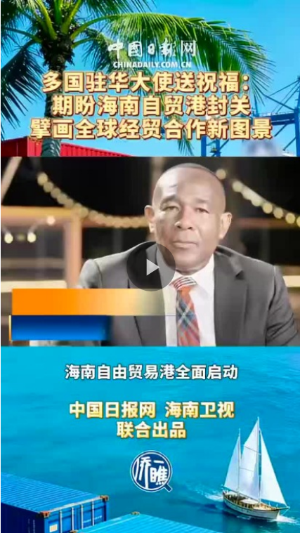 中国日报网12月18日电 2025年12月18日,海南自由贸易港将迎来全岛封关运作的历史性时刻——这一关键节点不仅标志着中国高水平开放的又一里程碑,更承载着深化全球经贸联结、共促繁荣的时代使命。值此之际,多米尼克驻华大使马丁·查尔斯、古巴驻华大使白诗德、委内瑞拉驻华大使雷米希奥·塞瓦略斯、牙买加驻华大使亚瑟·威廉姆斯、哥伦比亚驻华大使塞尔西奥·卡夫雷拉、新加坡驻华大使陈海泉、克罗地亚驻华大使达里欧·米海林等七国驻华使节,纷纷以真挚话语传递祝福与期待。