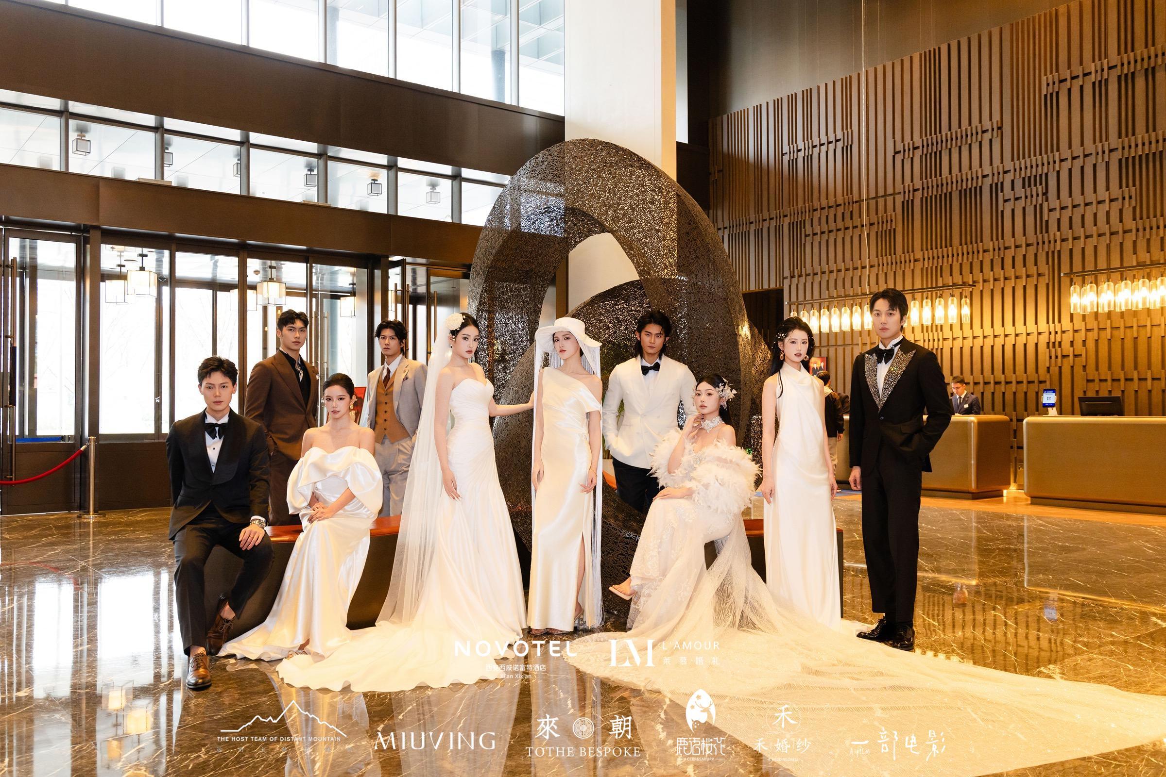 酒店客房楼层区域为纯白极简的空中连廊,通过错落的结构与自然光影交融,形成层次丰富的拍摄场景。一楼西餐厅户外花园则为婚礼提供了一处城市中的静谧之所,营造松弛自然的仪式氛围。