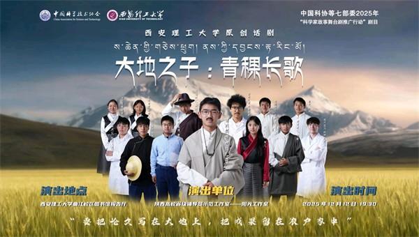 三秦都市报-三秦网讯(雷培 记者 王嘉)近日,由西安理工大学校阳光工作室(陕西高校省级辅导员示范工作室)主创的原创话剧《大地之子:青稞长歌》在该校曲江校区图书馆报告厅首演。作为中国科协2025年“科学家故事舞台剧推广行动”入选剧目,这部以西藏“青稞之父”尼玛扎西生平为蓝本的作品,既是触动人心的艺术盛宴,更是学校落实立德树人、铸牢中华民族共同体意识的生动实践。