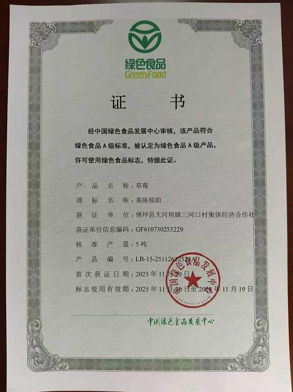 如今,一张张绿色食品认证证书,不仅是佛坪农产品的“品质身份证”,更成为了农民增收的“致富通行证”。