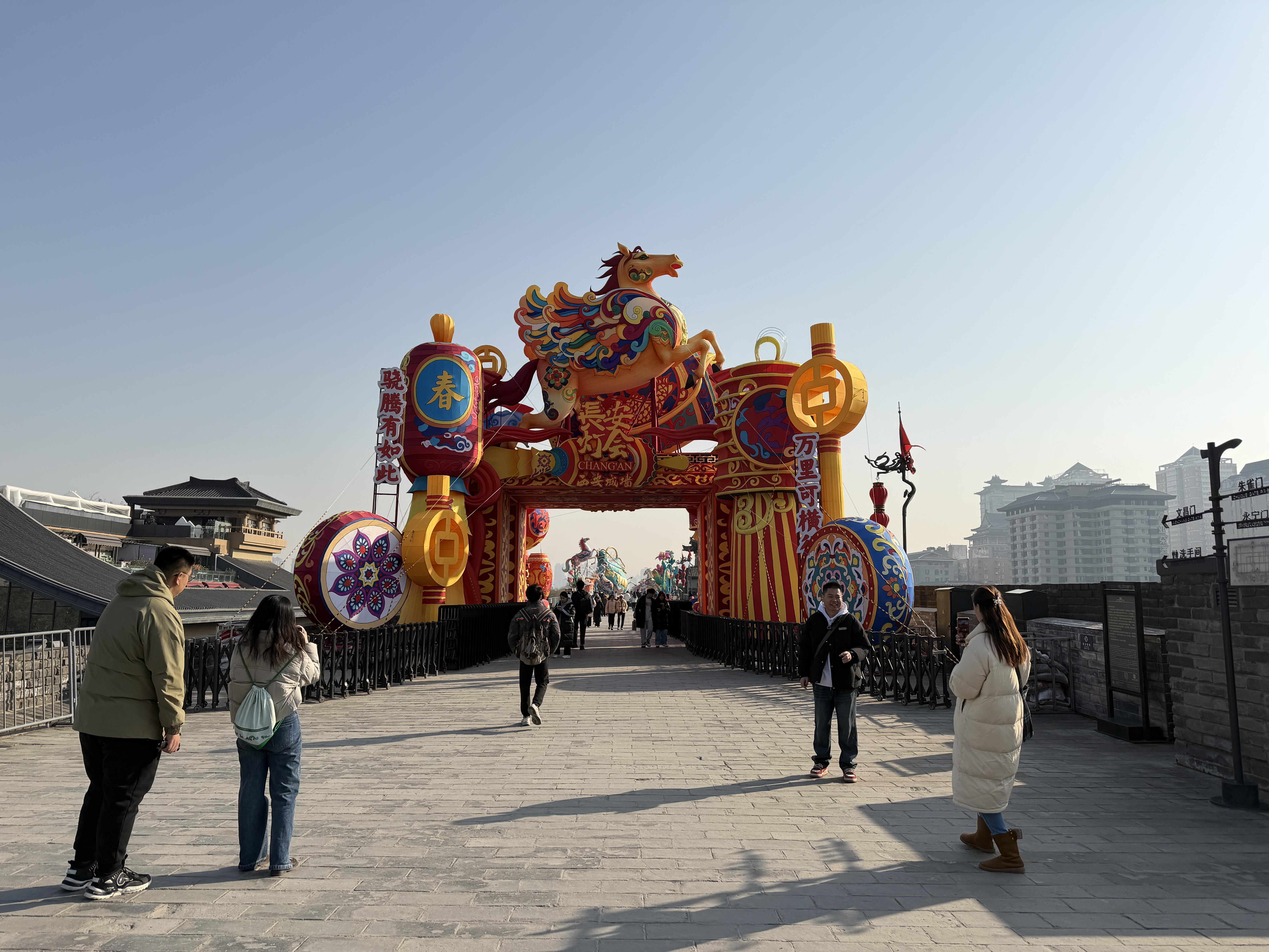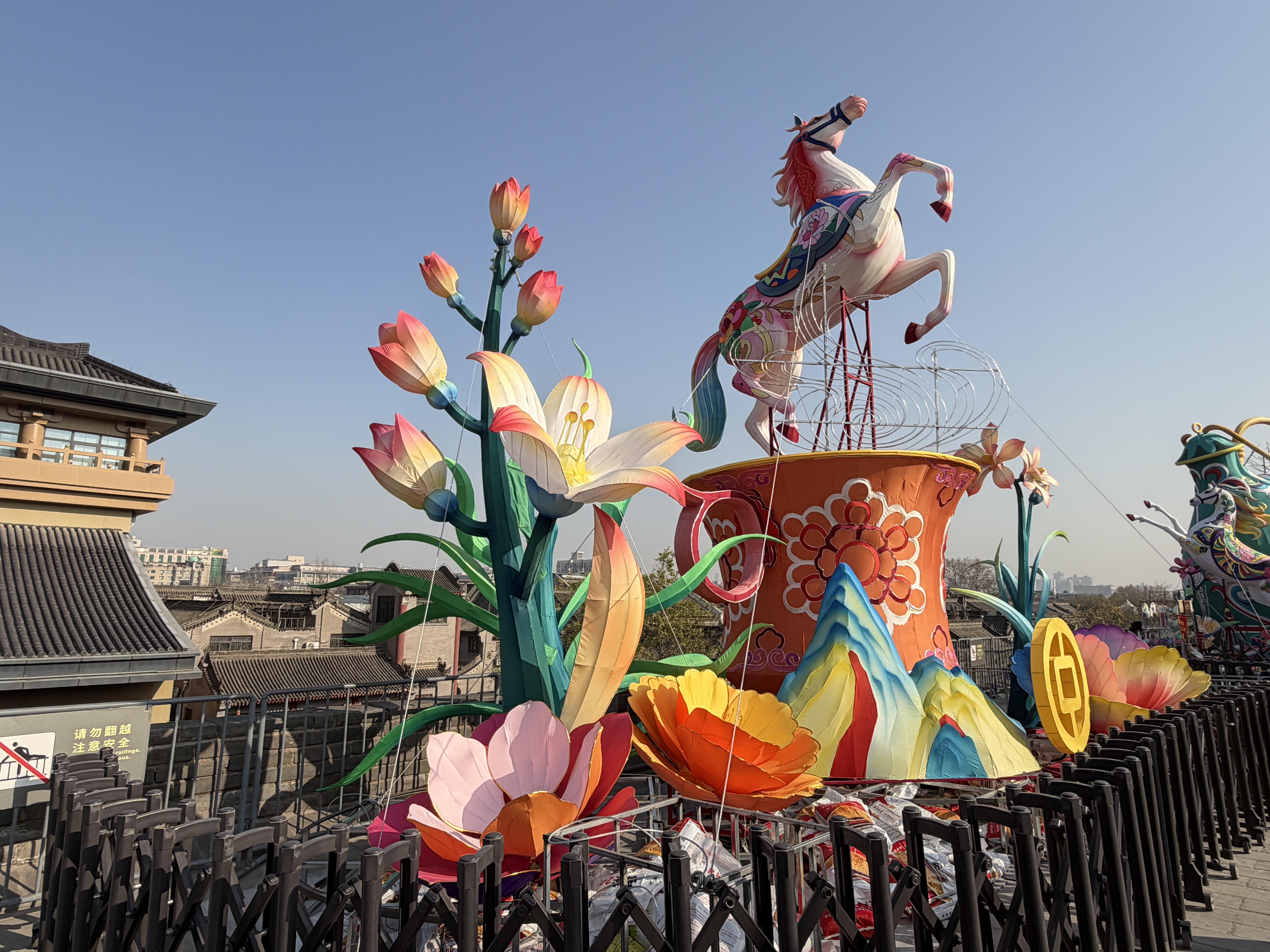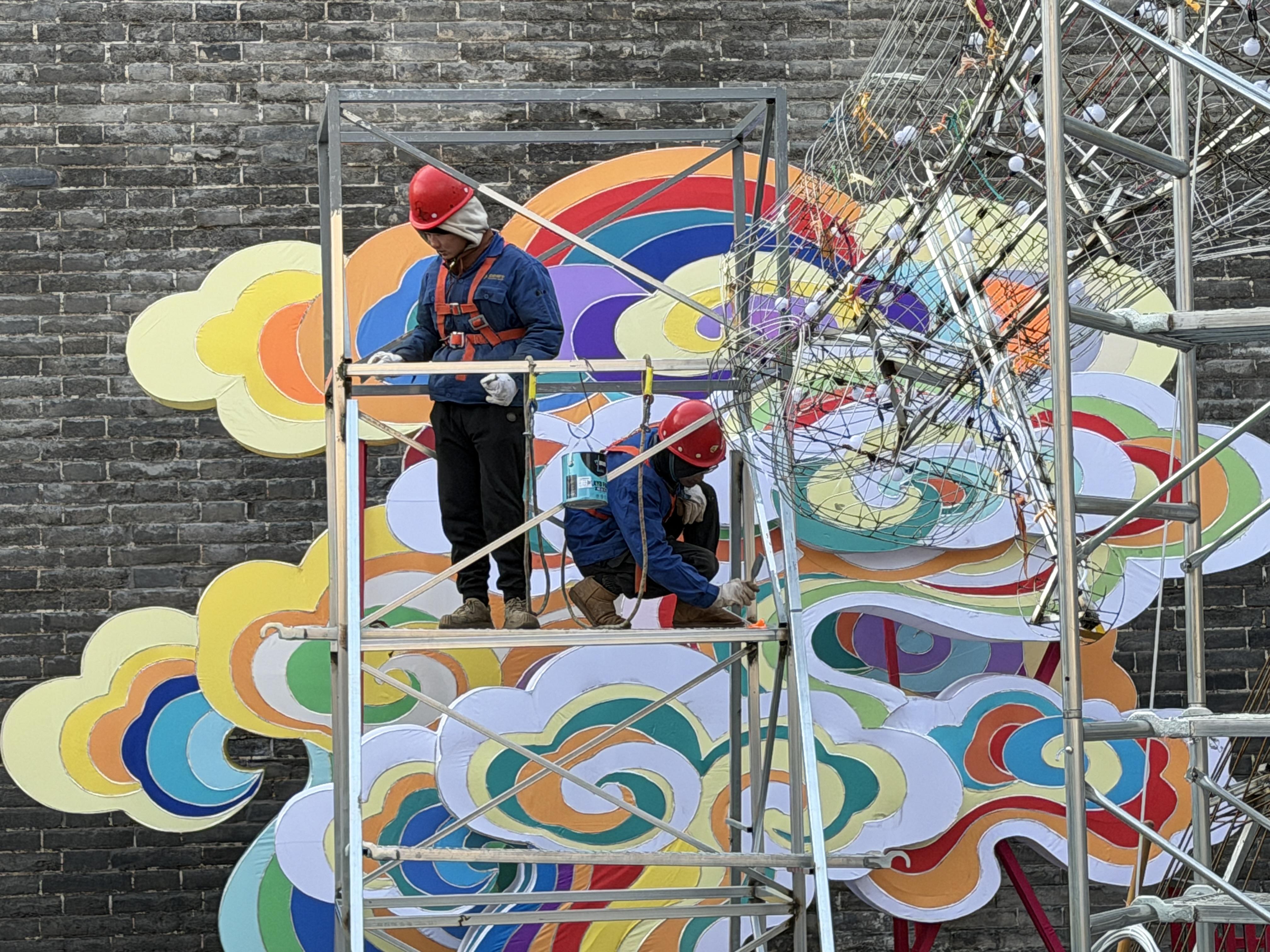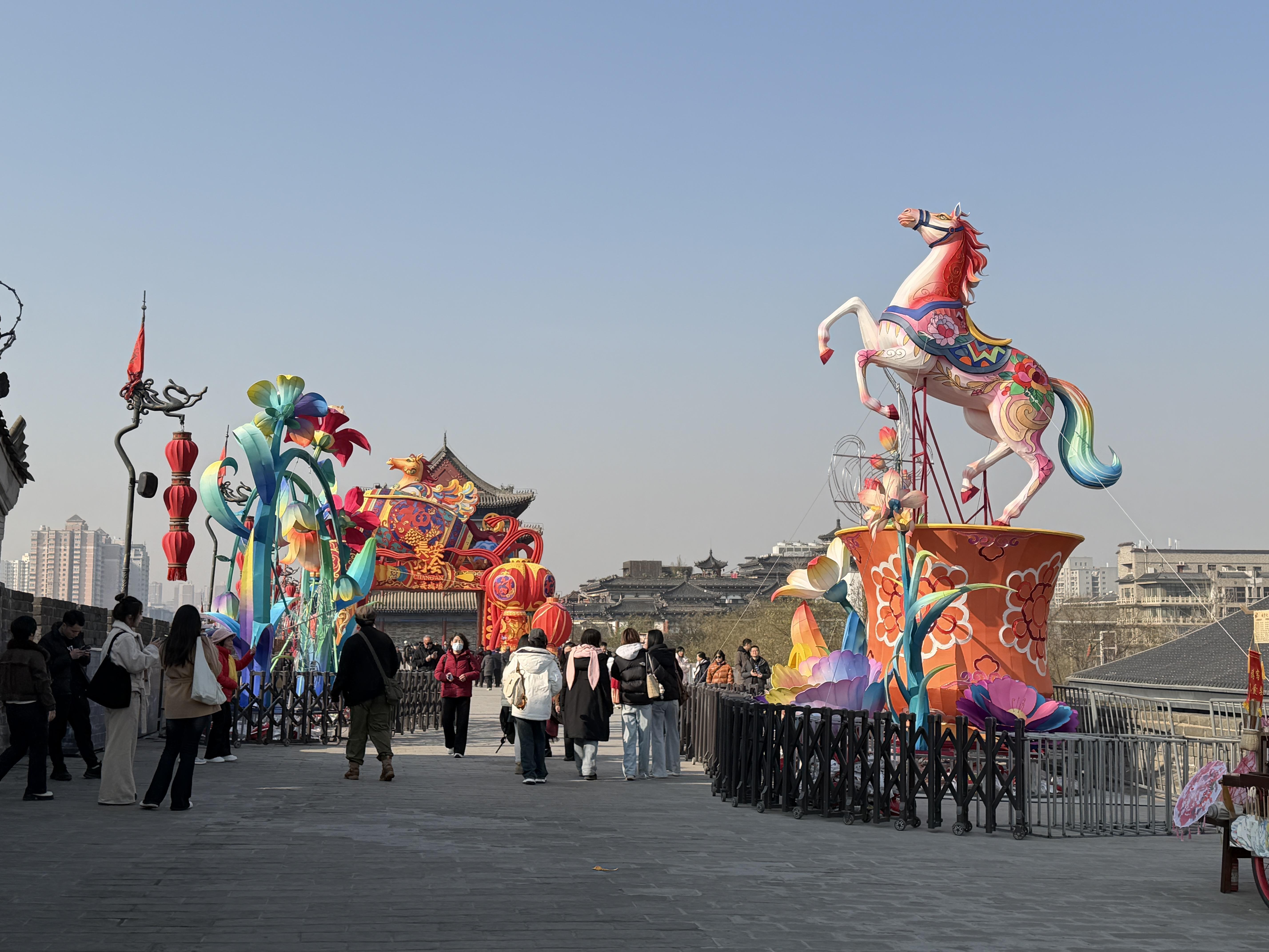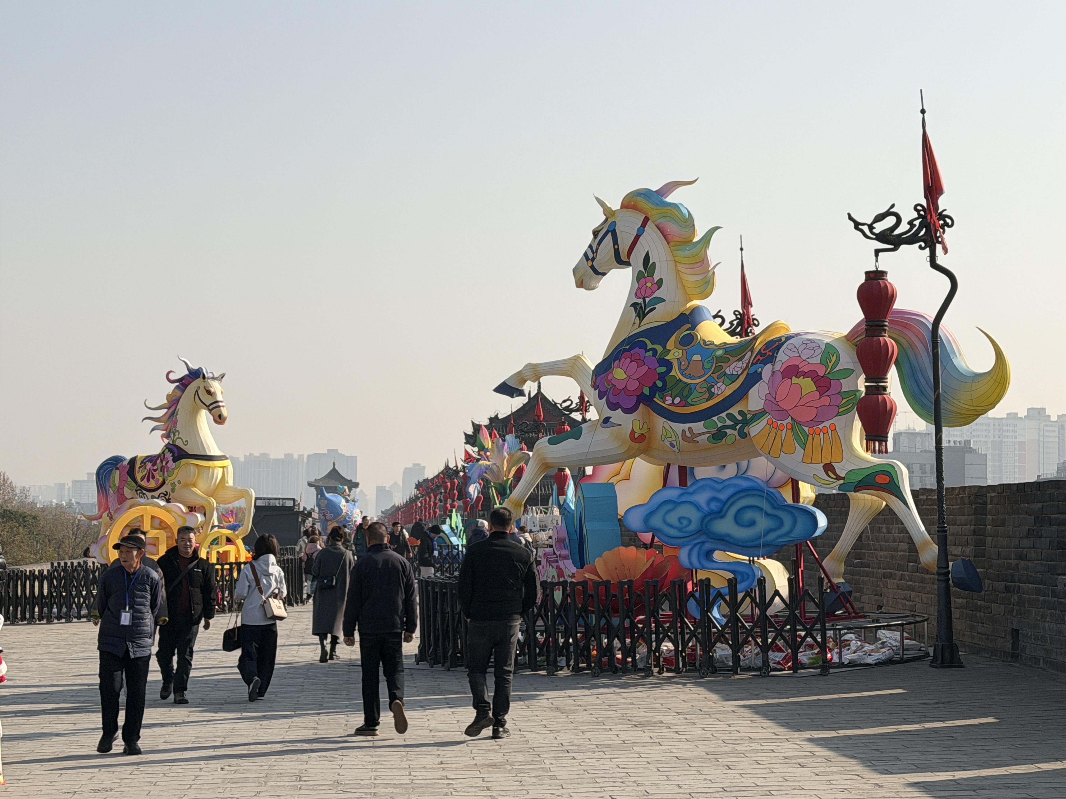 记者在南门城墙看到,工人们正忙碌着搭建灯组。钢架林立,金属敲击声不断。有人对照图纸指挥,有人焊接骨架,远处几处大型灯组已初见雏形。西安城墙景区工作人员李佳洁介绍,本届灯会以“千灯映长安·午马迎春来”为主题,围绕“国宝焕新·光耀长安”主线,设置“国宝焕新颜、诗韵长安城、奔腾生肖马”三大文化板块,致力于实现传统文化与现代创新的深度融合。