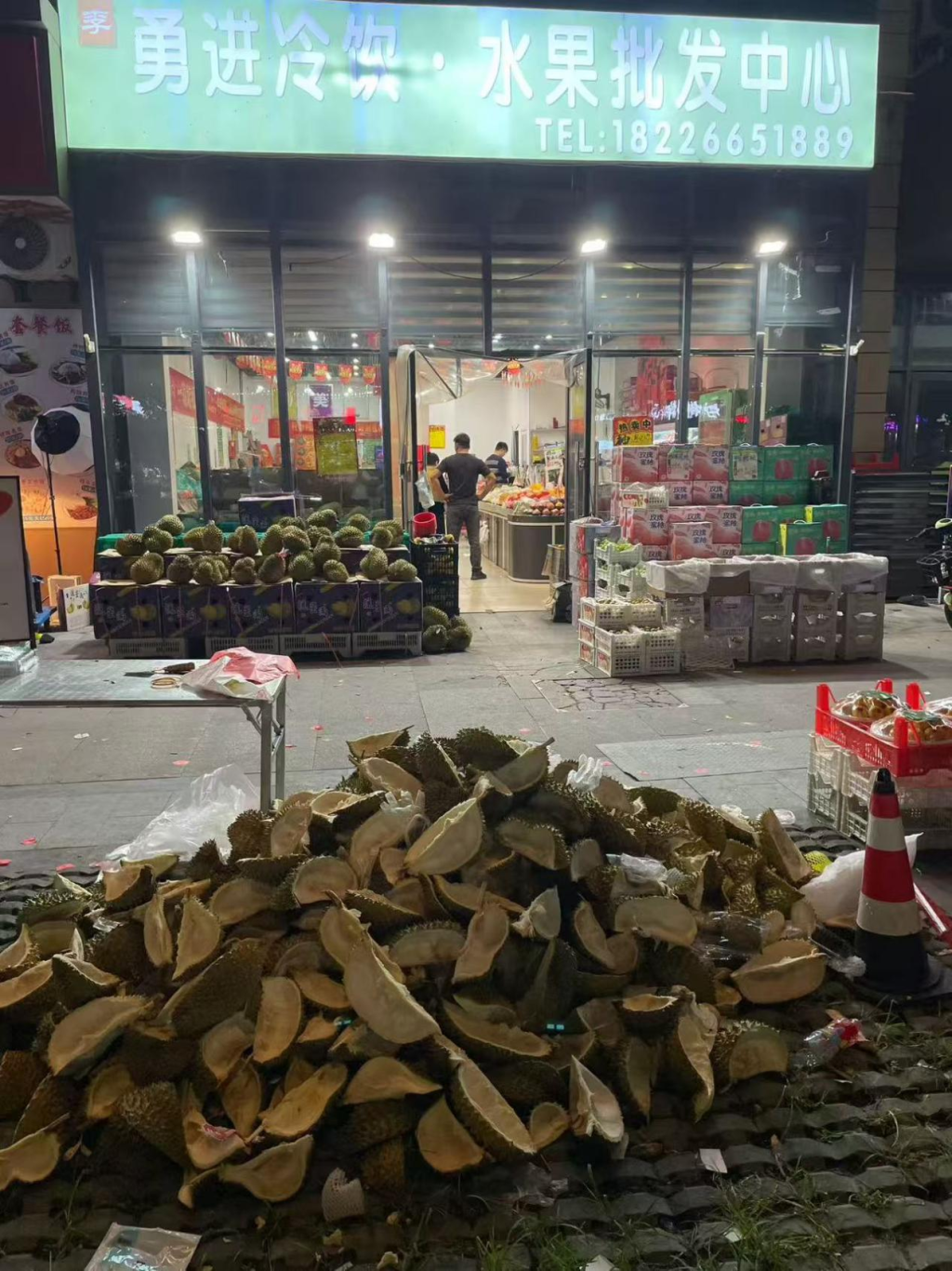 今年9月的一天,李勇进水果店卖的榴莲。受访者供图