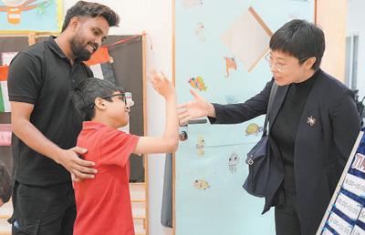 中建中东公司连续13年向迪拜拉希德残障儿童中心捐赠,助力改善残障儿童教育条件。图为今年6月,中建中东公司相关负责人(右一)前往拉希德残障儿童中心交流。