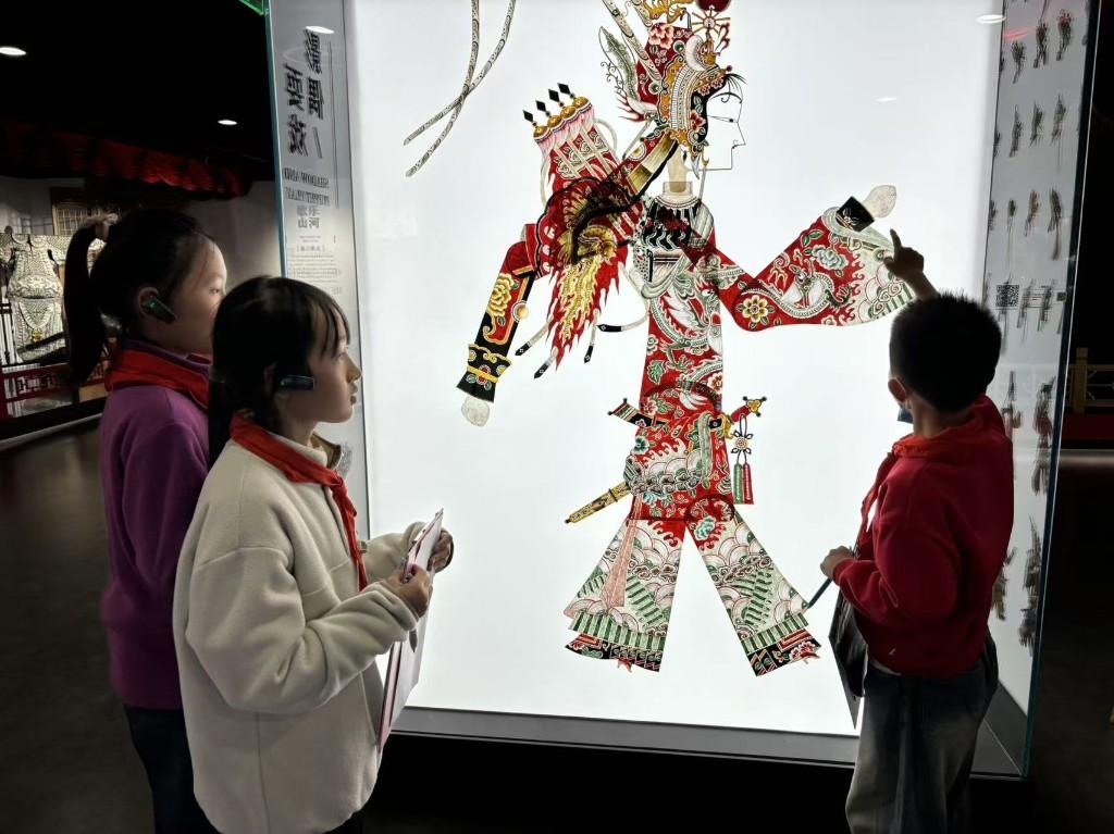 课程当天,佩戴着鲜艳红领巾的少先队员们一踏入文化馆非遗体验中心,便被眼前丰富多彩的非遗展品深深吸引。凤翔泥塑以其鲜亮的色彩和憨态可掬的造型,展现了民俗童趣;陕北剪纸线条灵动,寓意深远,蕴含着黄土高原的生活智慧;耀州窑青瓷釉色温润,刻花精巧,延续了千年的制瓷荣光;秦腔脸谱纹样鲜明,秦韵十足,充满生活气息。这些非遗珍品不再是书本上的静态文字,而是化作了可触摸、可感知的鲜活文明,让队员们目不暇接,纷纷发出啧啧称赞。