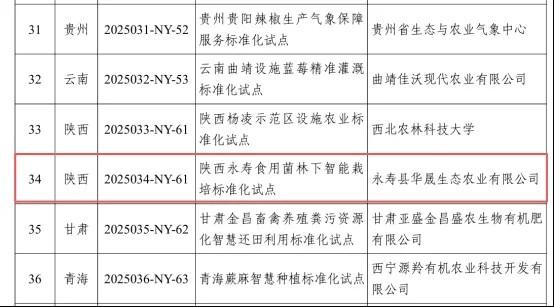 三秦都市报-三秦网讯(记者 和平)近日,国家标准化管理委员会下达2025年度国家标准化试点项目名单,省标准化研究院策划的“永寿食用菌林下智能栽培标准化试点”成功立项。该项目以发展林下经济为目标,构建覆盖食用菌智能化栽培全过程的标准体系,打造林下经济发展的智能化、标准化模式,助力县域经济实现高质量发展。