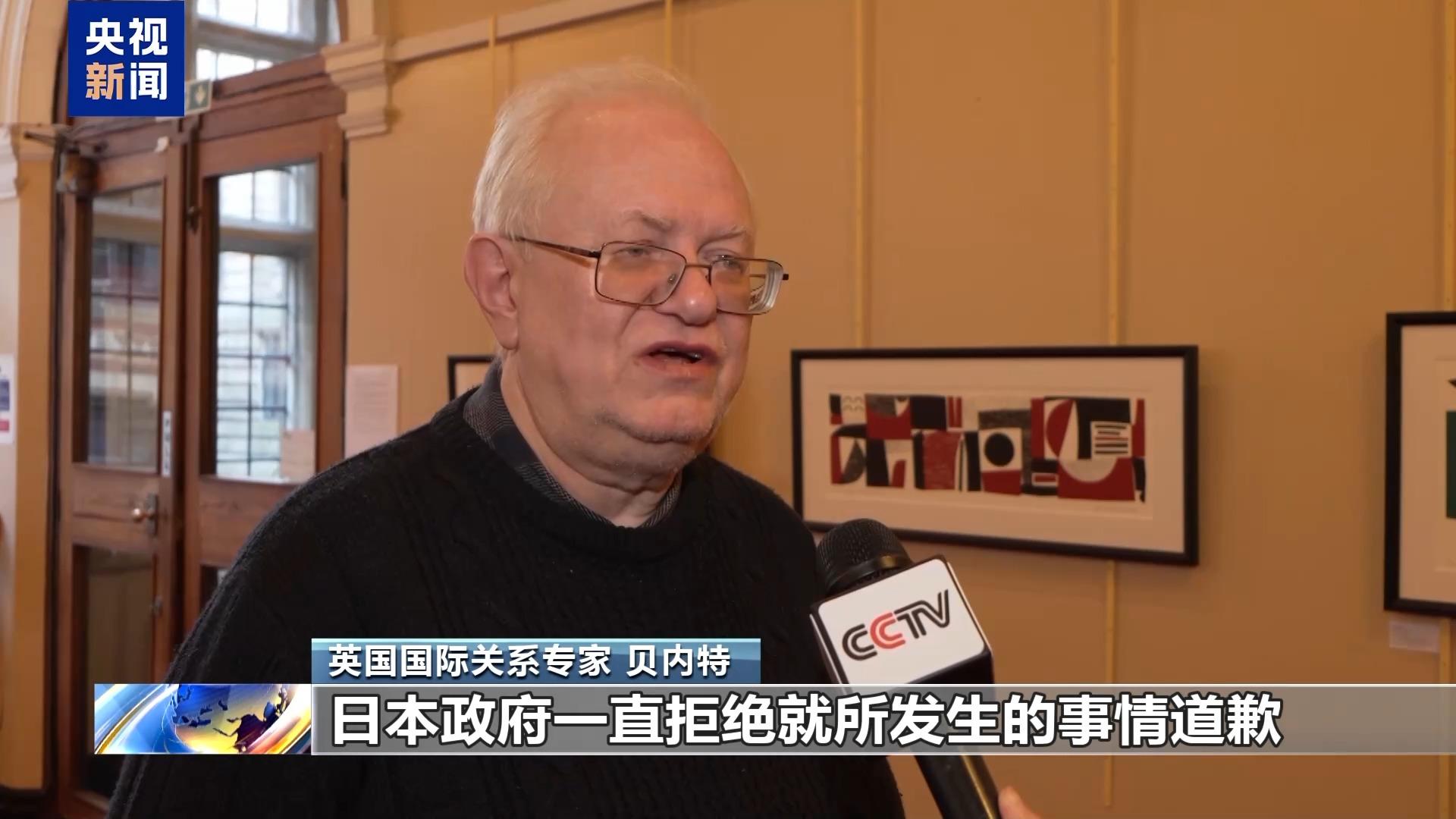 英国国际关系专家 贝内特:日本政府一直拒绝就所发生的事情道歉,正是由于日方拒绝道歉,拒绝正视历史,日本学校不仅不教授正确的历史观,而且在许多问题上都存在着歪曲历史的现象。日本政府现在走上了一条非常危险的道路,这不仅令中国人民感到困扰,也令整个地区的人们感到担忧。