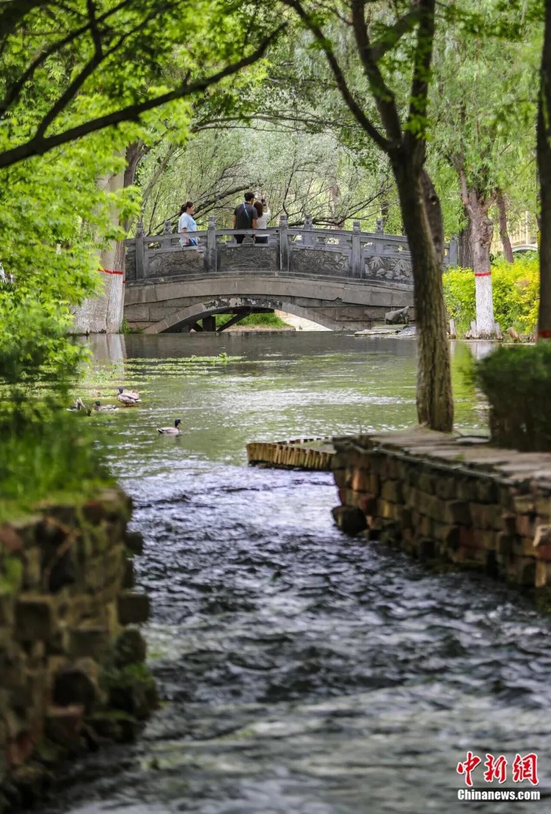水磨沟公园,游人在小桥赏景。乌鲁木齐晚报全媒体记者 米热扎提·木塔力甫 摄