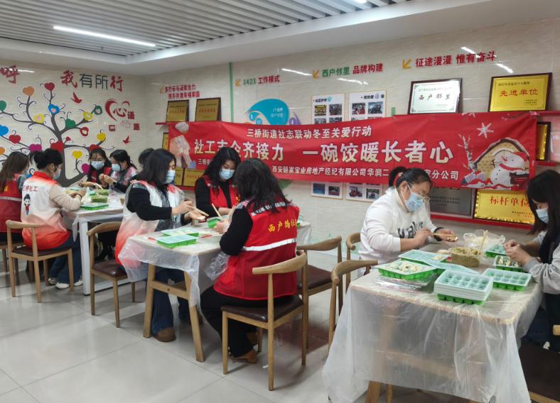 三秦都市报-三秦网讯(记者 代泽均)12月19日上午,一场名为“社工志企齐接力,一碗饺暖长者心”的冬至关爱行动在西安西户路社区温情上演。社区工作者、社工、链家企业志愿者以及社区热心居民齐聚一堂,大家洗净双手,系上围裙,迅速投入“同心协‘饺’”的环节。