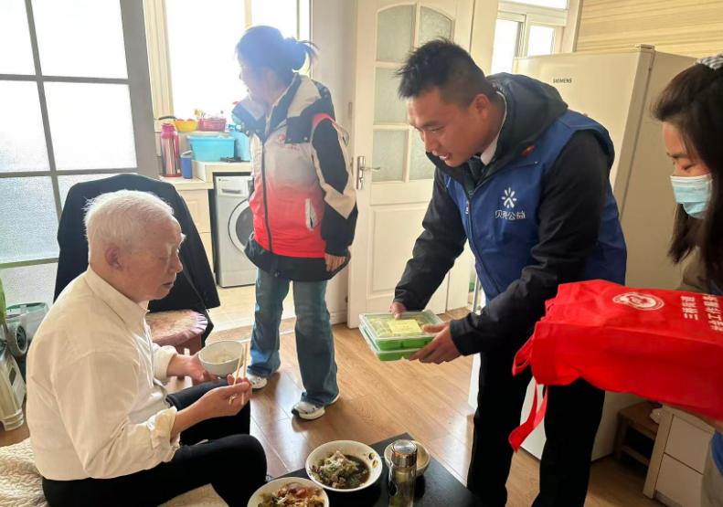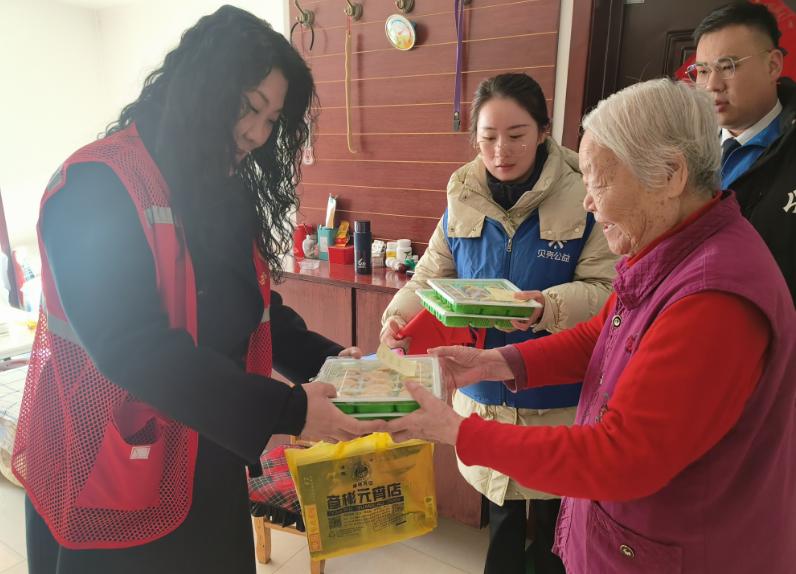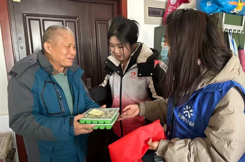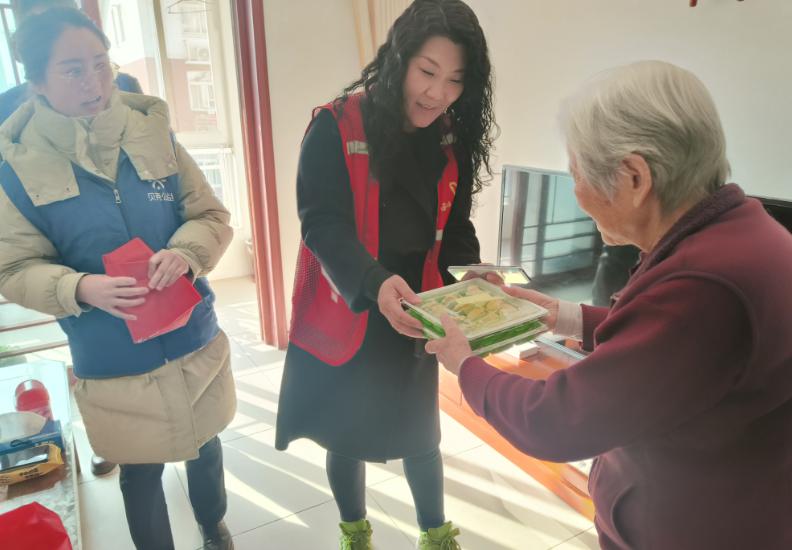 上午11点左右,经过精心分装、贴上暖心祝福卡的饺子“整装待发”。由“社工+社区工作者+链家志愿者”组成的数支“暖冬小分队”正式出发,分头前往老人们的家中。“阿姨,冬至安康!我们给您送饺子来啦!”“王爷爷,最近身体怎么样?天气冷,用电用气要当心啊。”……简短而真诚的问候,热腾腾的饺子被递到老人手中,随之送达的,是来自社区大家庭的深切挂念。
