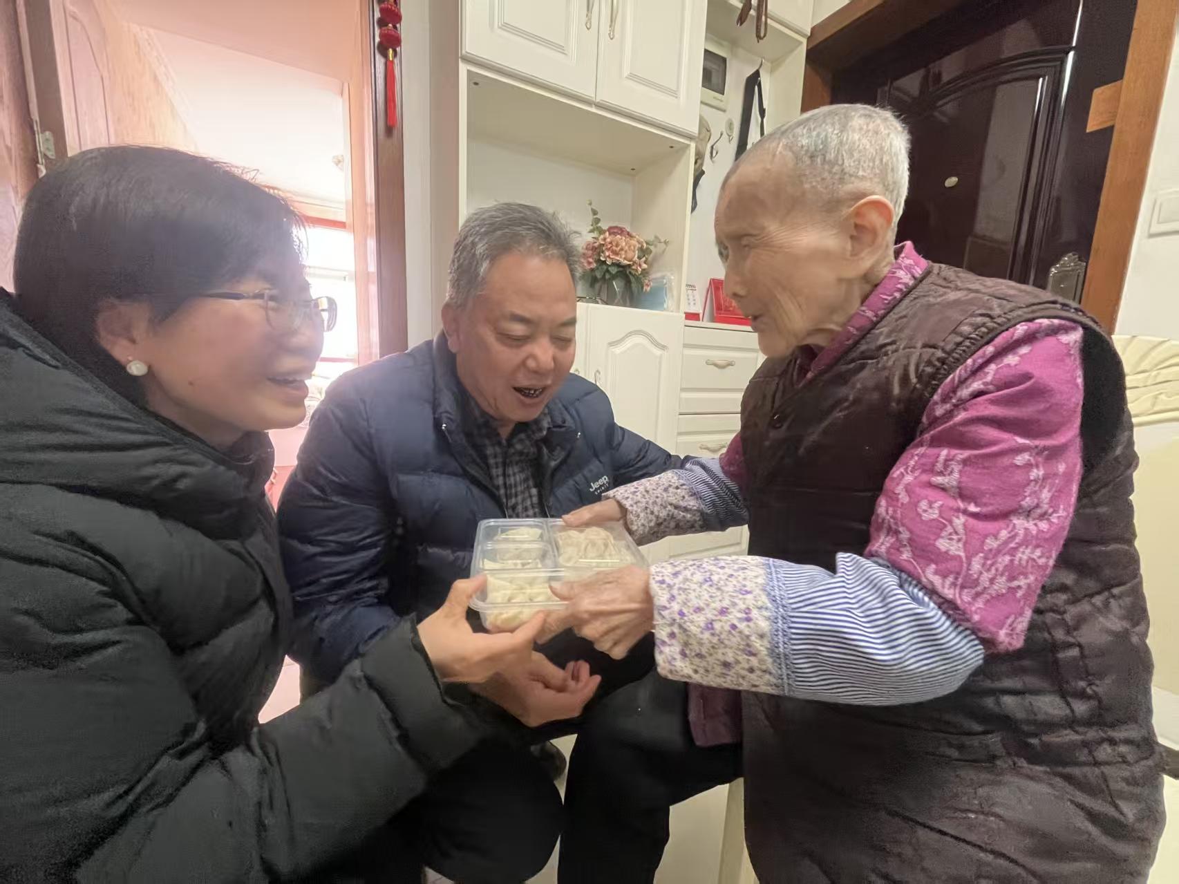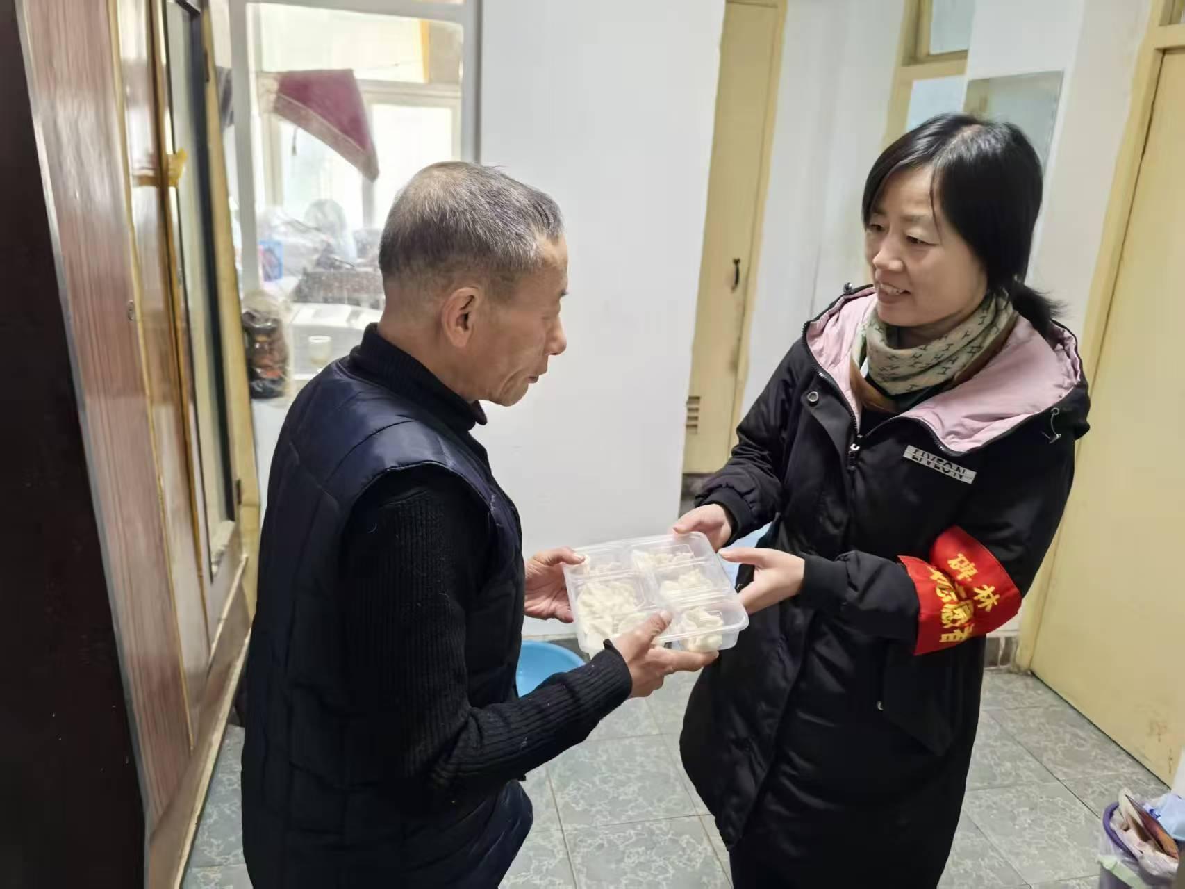 “南奶奶,我们给您送饺子来啦!”楼栋长姚阿姨敲开了独居老人南奶奶的家门。看到熟悉的笑脸和手里的饺子,南奶奶感动得说:“太谢谢你们了,总惦记着我。”在百岁老人孙奶奶家中,社区负责人王媛细心询问老人的身体状况和生活需求,老人紧握书记双手连声道谢,温情关怀在冬日里静静流淌;在困难家庭卫新华家,工作人员了解他的家庭情况,鼓励他积极面对生活。