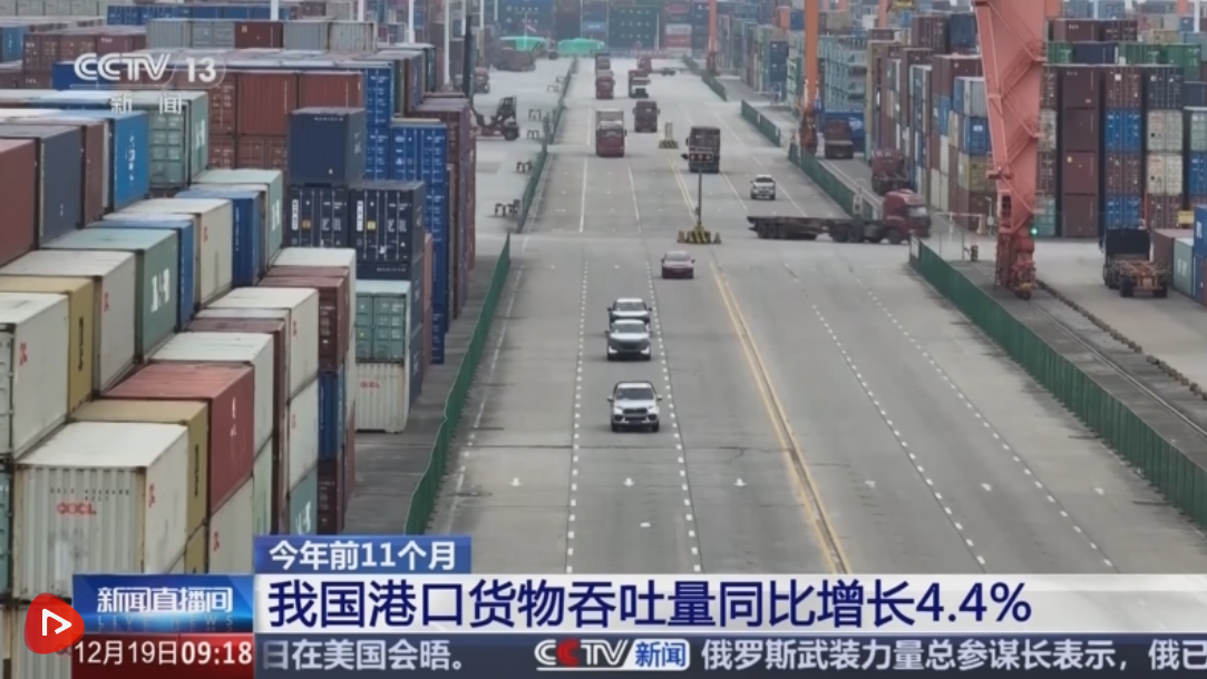 今年以来,我国港口运行态势良好,前11个月,货物吞吐量保持较快增长,同比增长4.4%。外贸航线网络持续拓展,叠加出口产品结构不断升级,为我国外贸高质量发展注入强劲动力。