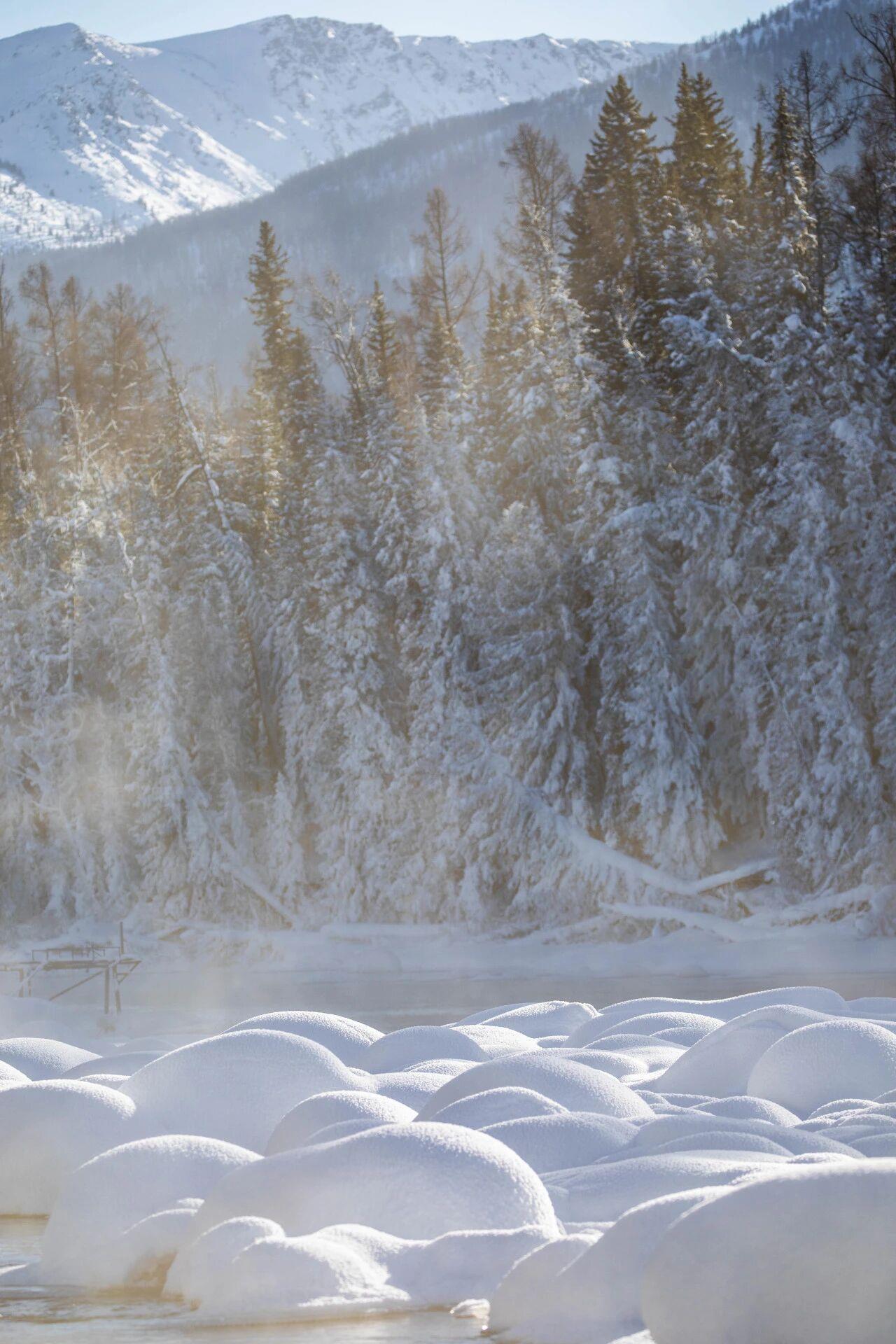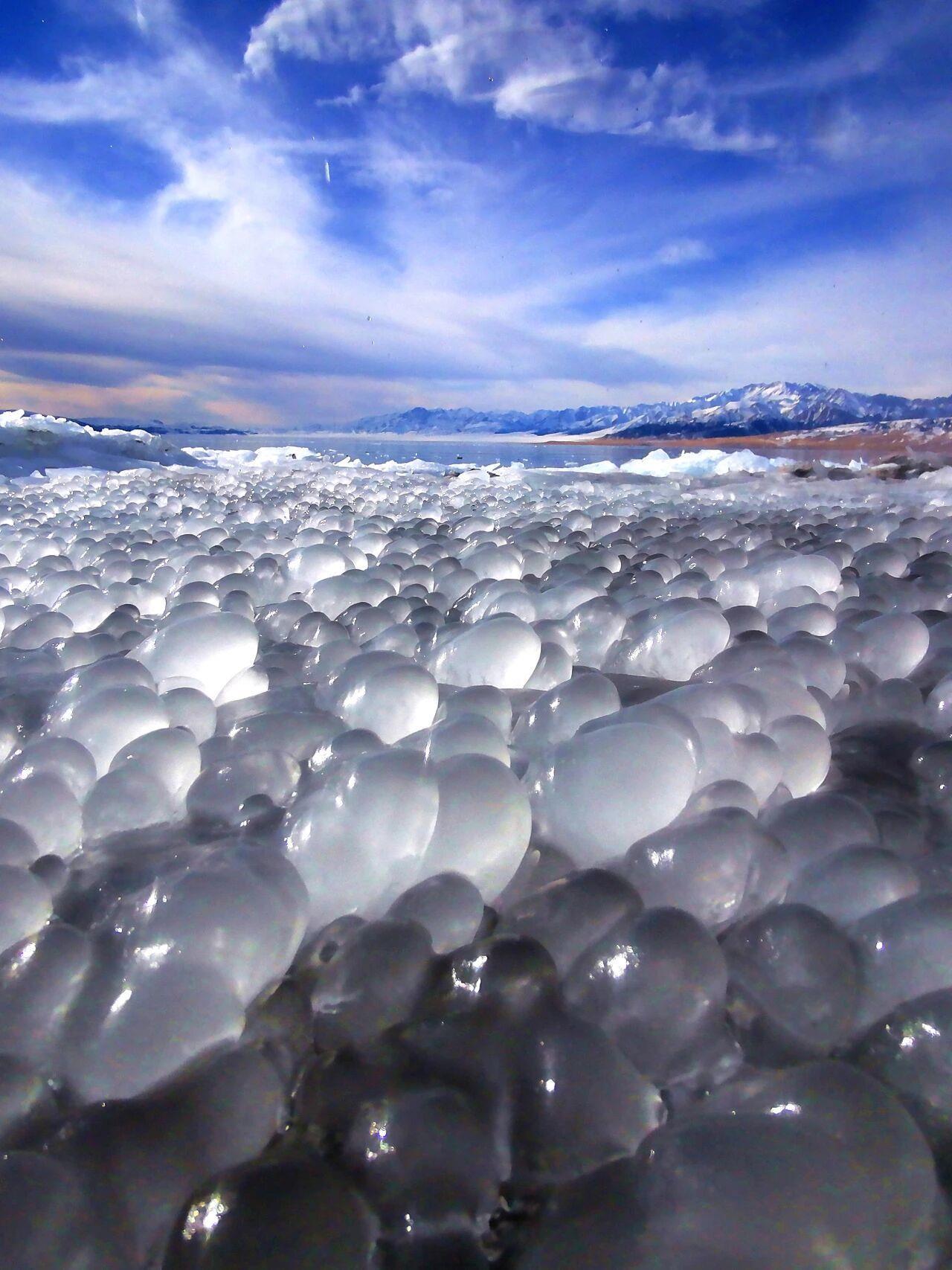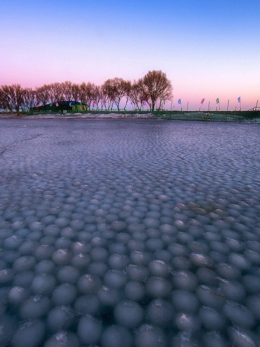 冰蛋:冰蛋的形成,首先需要“蛋黄”,可能是岸边的泥浆混合物,也可能是沙粒、小石头等。随着海浪来回冲刷,结冰的“蛋黄”不断被淋湿、结冰,再淋湿、再结冰……冰蛋就这样一点点变大,并在风的“打磨”下变得圆滑,形成了可爱的冰蛋。(来源:中国国家地理)