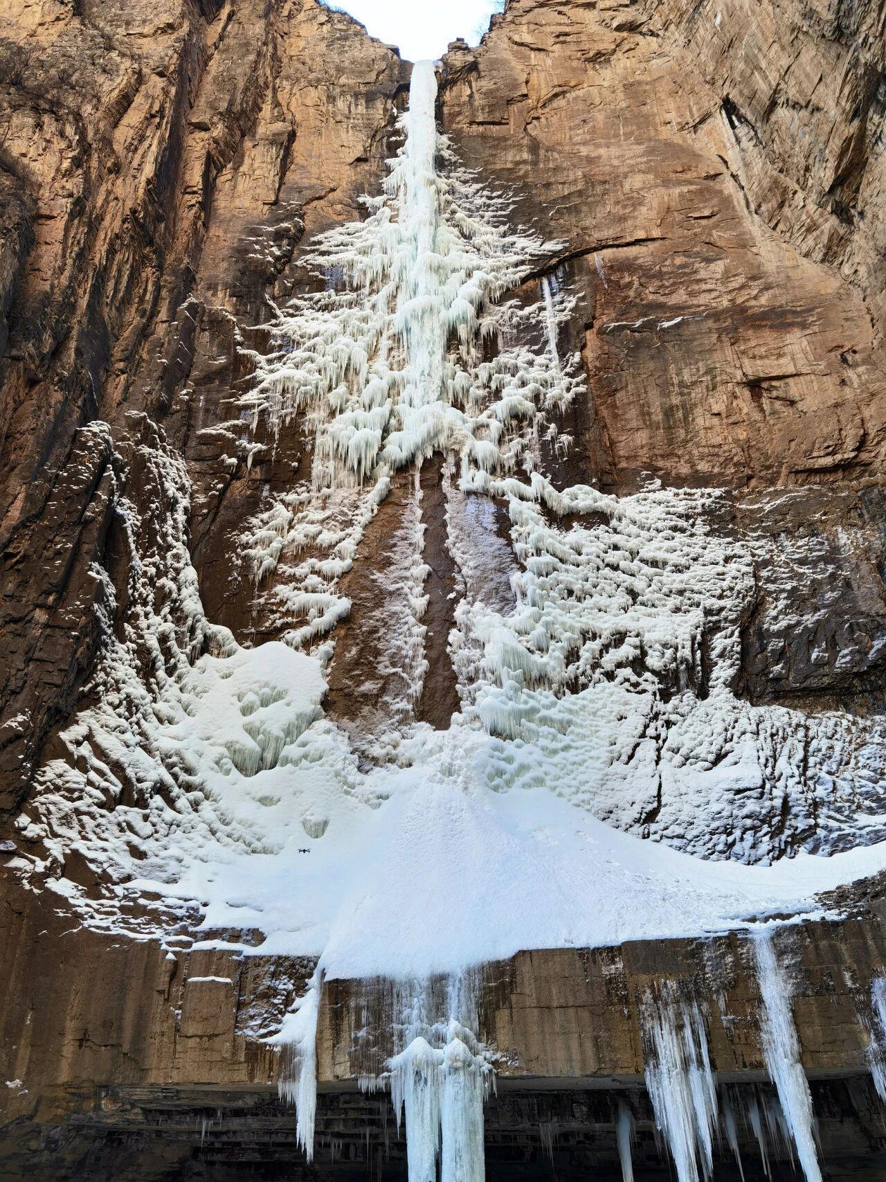 冰瀑:冰瀑现象并不常见,这种奇观会在消融得快且补充丰富的冰川上出现。而除了冰川冰瀑,还有一些流水瀑布结冰的“冰冻瀑布”现象。图中这颗巨大的“圣诞树”,是太行冰瀑的“异形”。(来源:中国国家地理)