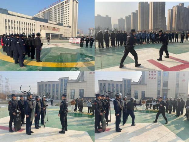 宣传环节结束后,反特大队专业教官团队以“理论精讲+实操演练”模式,为医院安保人员及重点科室职工代表开展专业集训。理论讲解中,教官结合典型案例深入浅出剖析医院可能面临的暴恐袭击、个人极端行为等风险类型与特点,清晰阐释最小应急单元“第一时间响应、第一现场处置”的核心要义,强调团队协作在应急处置中的关键价值。实操演练环节,教官逐一拆解盾牌、防暴长棍、钢叉等装备的握持姿势、防护要领与进攻技法,明确使用禁忌,并模拟刀斧砍杀、突发闯入等高频场景,组织参训人员分组开展“盾棍叉组合”协同处置演练。教官全程跟班指导、实时纠错,确保参训人员熟练掌握装备使用与协同作战流程,提升快速反应、规范处置和风险管控能力。