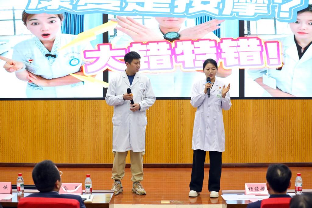 决赛现场,15支团队依照抽签顺序依次登场,在规定的6分钟内尽情展示。作品题材覆盖广泛,从女性盆底健康、心理情绪管理、骨质疏松防治,到哮喘急救、结石预警、糖尿病饮食指导,几乎涵盖了公众关切的各类健康议题。表现形式更是异彩纷呈:泌尿外科的《哪吒泌尿捉妖记》借用经典神话人物趣味解读疾病;呼吸与危重症科(西咸)的《甄嬛传之哮喘防治风云》让健康知识融入宫斗剧情;骨科的《长安三万里•骨健奇缘》则在唐诗的意境中传递骨骼养护理念;心血管外科的《心肺相声疗法》更是用传统曲艺形式抖响了一个个健康“包袱”。这些作品巧妙地将专业性、趣味性与实用性融为一体,让深奥的医学原理变得可知、可感、可记,引来现场阵阵笑声与掌声。
