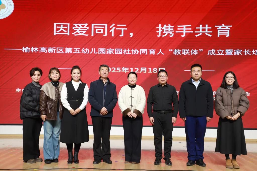仪式上,榆阳区关工委主任叶士亮致辞,肯定高新五幼在家庭教育与社区联动中的探索实践,结合国家政策分析育人发展态势,从幼儿园、协同单位、家长三个维度对“教联体”建设提出期望。