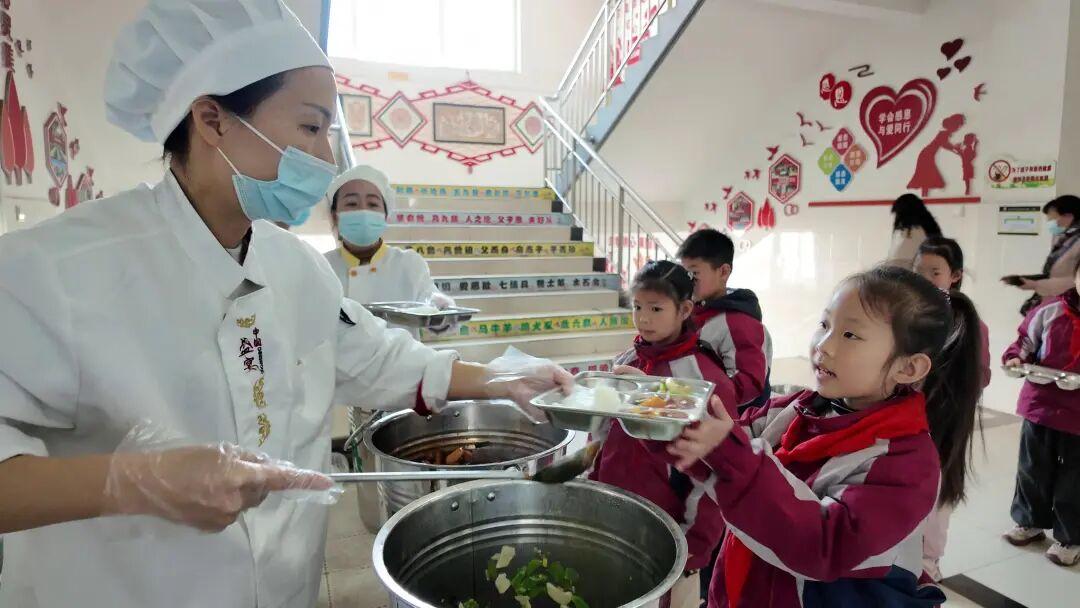 在孔家庄小学食堂,厨师们正忙着烹制菜肴,为孩子们准备营养午餐。此时,一群家长志愿者也穿梭其间,他们亲身参与食材分拣、餐食分餐等工作。通过亲身实践,家长们不仅深入了解了食堂运作的细节,更以“亲历者”的身份实现了对后厨的全方位监督。这种“动手参与+亲眼见证”的方式,彻底打破了校园餐饮的“信息壁垒”,让“阳光食堂”真正照进家长心里。“作为学校营养午餐工作的亲身参与者,我深切感受到学校对孩子们饮食安全与健康的高度重视,能和学校一起守护孩子们‘舌尖上的安全’,助力他们健康成长,我们既安心又自豪。”孔家庄小学分餐管理员兼家长志愿者罗玉琴感慨道。