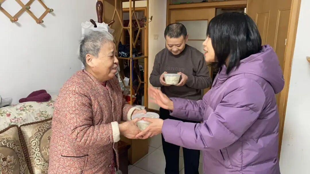 第一锅饺子出锅后,工作人员和志愿者优先分装好,送到现场的老人们手中。大家一边吃饺子,一边话家常,脸上洋溢着幸福的笑容。同时,社区工作人员与党员代表组成“送暖小队”,将一份份精心打包的饺子送至辖区困难家庭、独居老人家中。