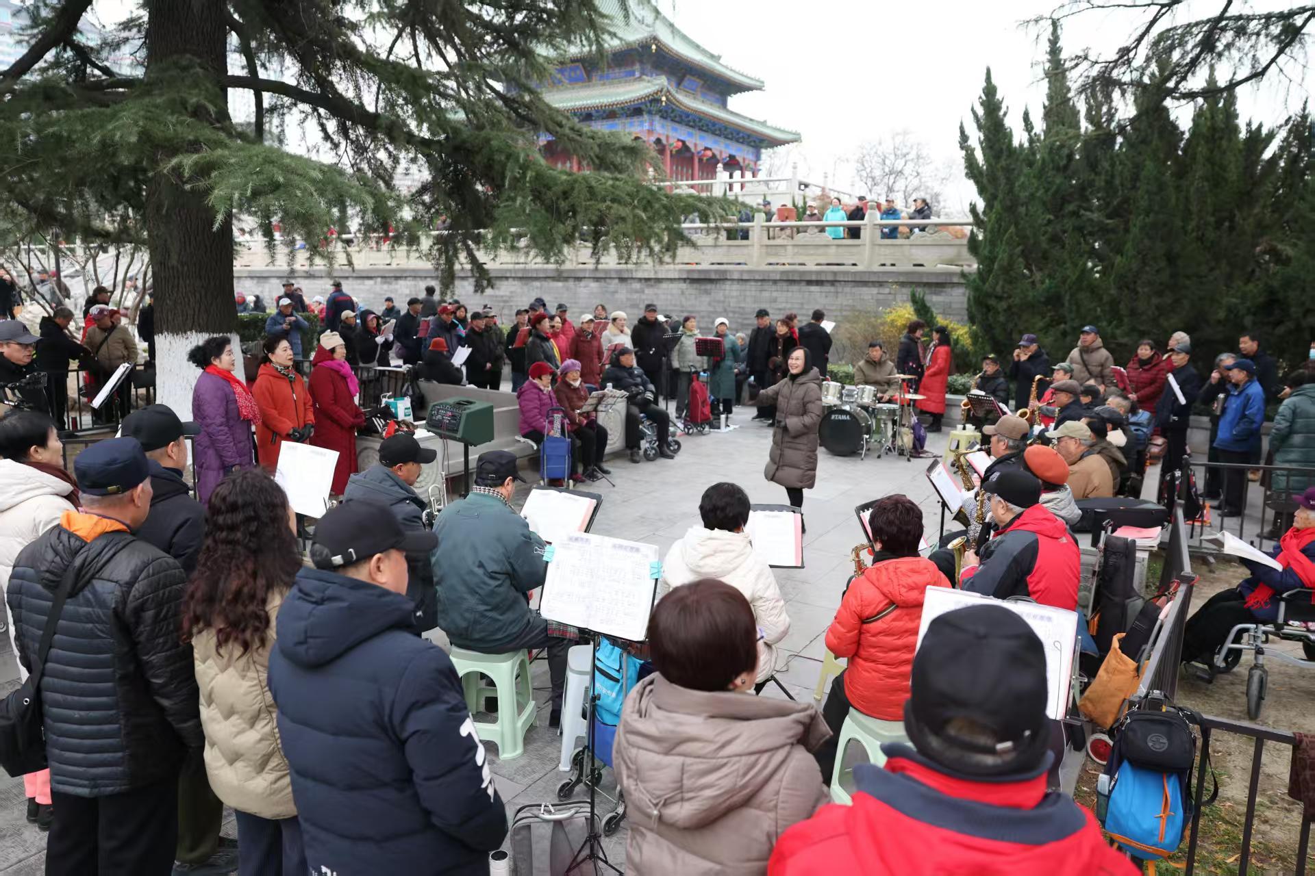 在公园湖边的大树下,一群乐手们架好乐器,电子琴、萨克斯、架子鼓等跟着指挥老师的手势演奏出《为了谁》《红河谷》等耳熟能详的经典老歌,不少市民捧着歌谱跟着旋律合唱。86岁的张大爷已经在这唱了13年,他告诉记者,乐队每天都会在这里演奏,唱歌的人却并不是固定的“合唱团”,而是市民自发前来,次数多了相互之间也就熟悉了。
