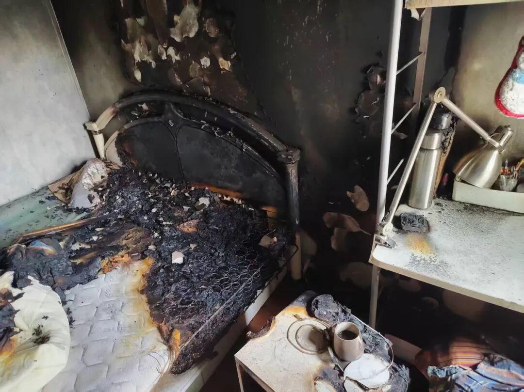 2025年4月15日,北京市石景山区某住户家中发生火灾,房间内的墙面被熏黑,床铺被烧毁。经调查,起火原因系该住户放置在卧室桌子上充电的充电宝锂电池发生热失控所致。