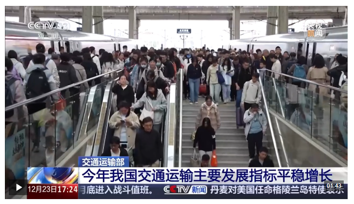 交通运输主要发展指标平稳增长。预计今年完成交通固定资产投资超3.6万亿元,新增高速铁路超2000公里、高速公路约8000公里、高等级航道约900公里,新颁证民用运输机场5个。跨区域人员流动量超660亿人次,完成营业性货运量超580亿吨,同比均增长3.5%左右。港口外贸集装箱吞吐量增长约9.6%,国际航空货运增长20%,快递业务量增长13.5%左右。