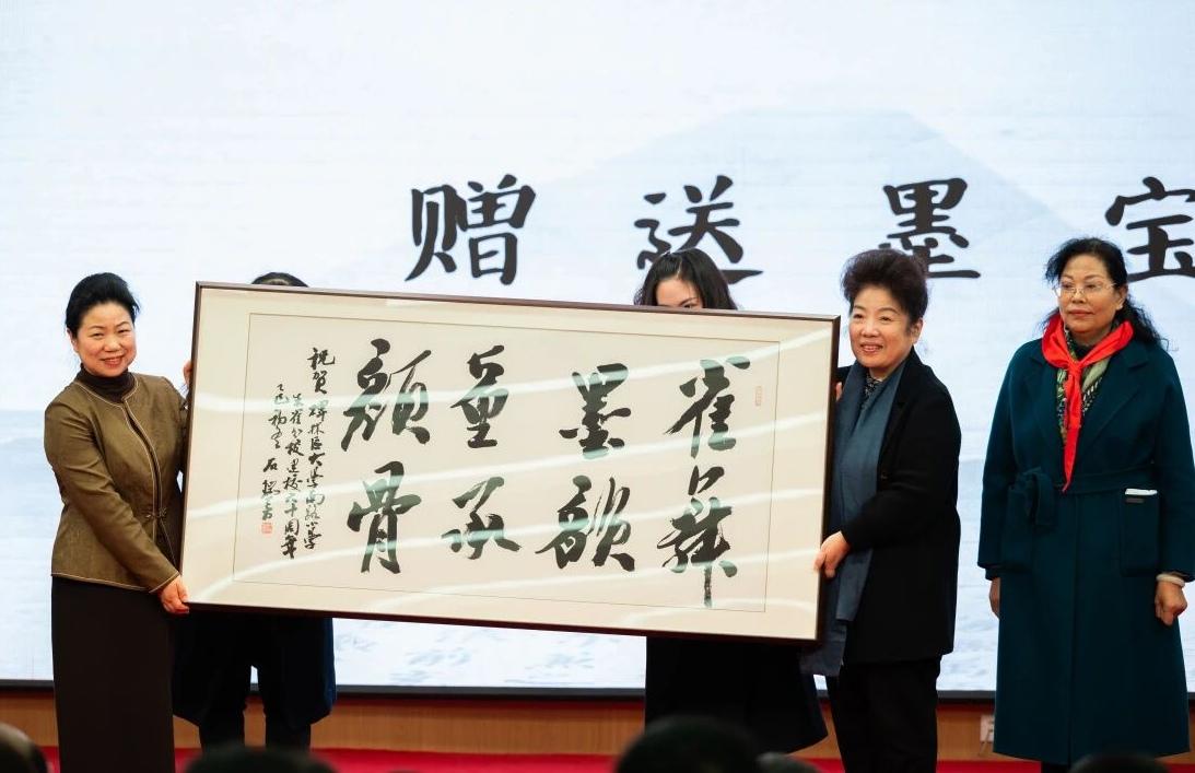大学南路小学教育集团校长李茵与西安市书协主席石瑞芳先后讲话,肯定学校书法教育成果并指明未来发展方向;石瑞芳还向学校赠送墨宝,一笔一画间表达了对学校六十华诞的祝福与对书法传承的殷切期盼。