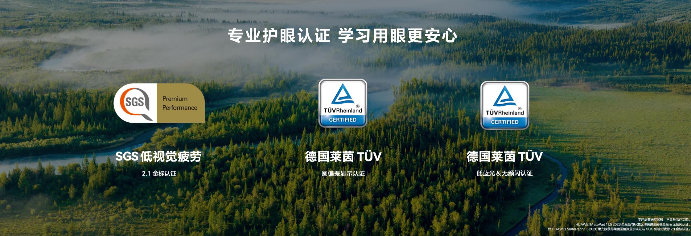 同时,新品引入“类自然光护眼显示”,主动优化屏幕发光,有效降低视觉疲劳程度。目前,华为MatePad 11.5柔光版已获得包括SGS低视觉疲劳金标2.1、德国莱茵圆偏振光显示等多项权威认证,为持久健康的学习体验提供了可靠保障。