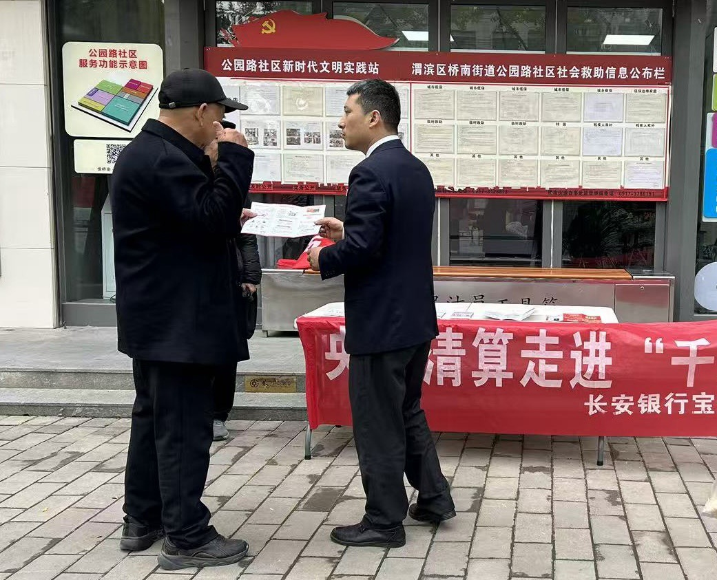 三秦都市报-三秦网讯(黄磊)为贯彻落实人民银行关于提升支付清算服务质效、增强公众金融安全意识的要求,长安银行宝鸡分行营业部于近期开展“央行清算,千企万户”主题宣传活动,以“厅堂+社区+商户”三维联动模式,全方位普及央行清算知识,累计覆盖客户300余人次,获得社会各界广泛好评。