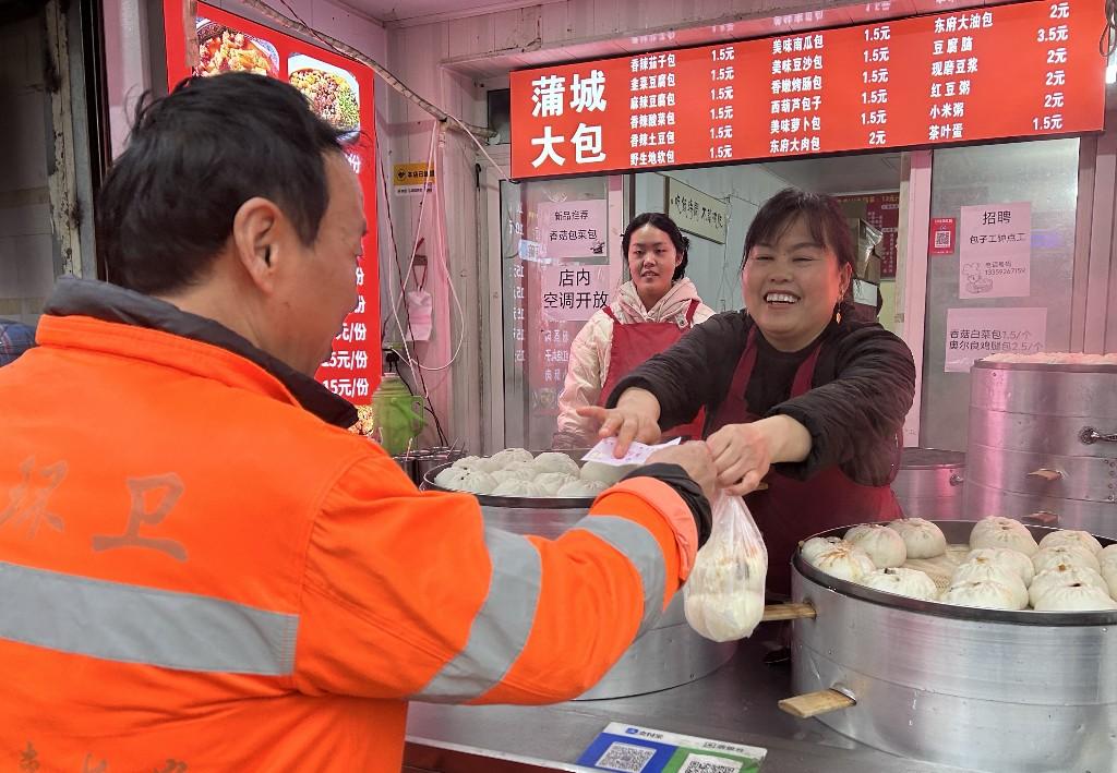 每月初一、十五的前一天,西安市新城区解放门街道东七路的“老朱家蒲城包子”铺都会收到两笔100元的微信转账。这位匿名捐助者3年来已默默转账70余次。包子铺店主朱春荣便用这笔钱蒸出40个包子,分成20份,配上热腾腾的豆浆或稀饭,免费送给环卫工人和社区老人。