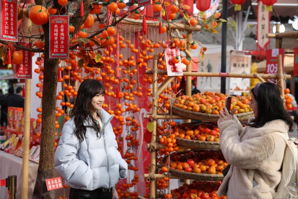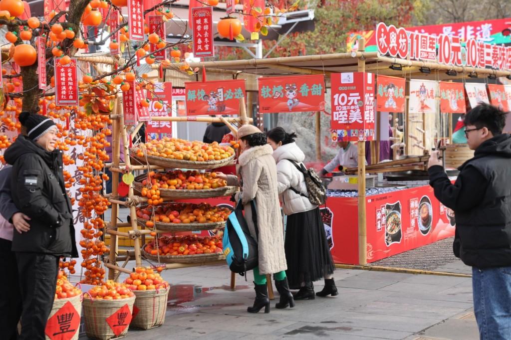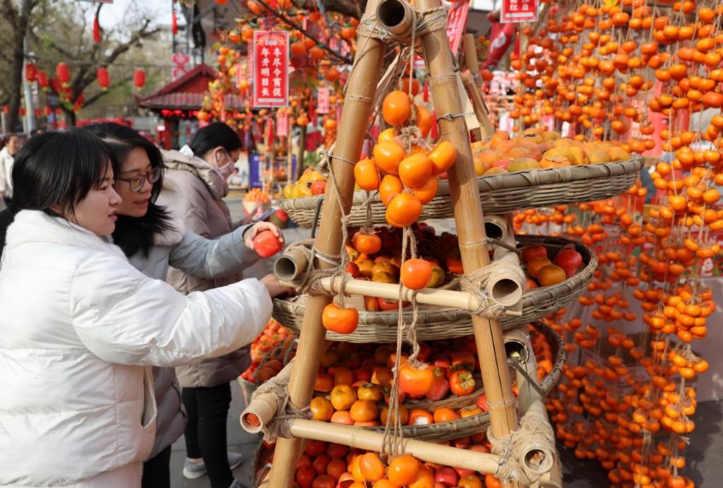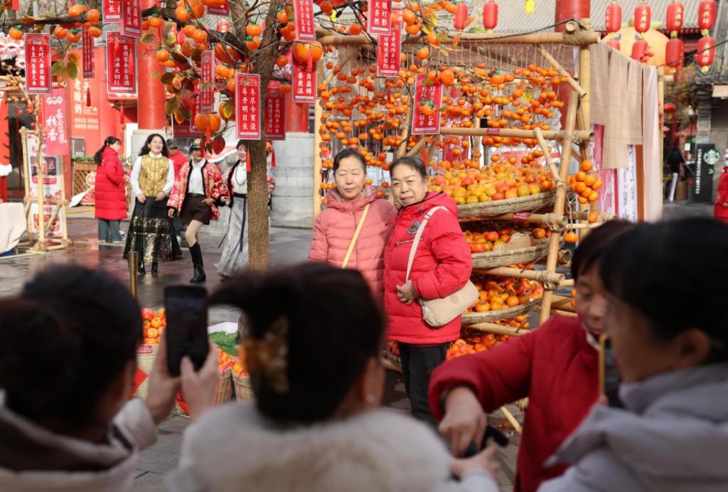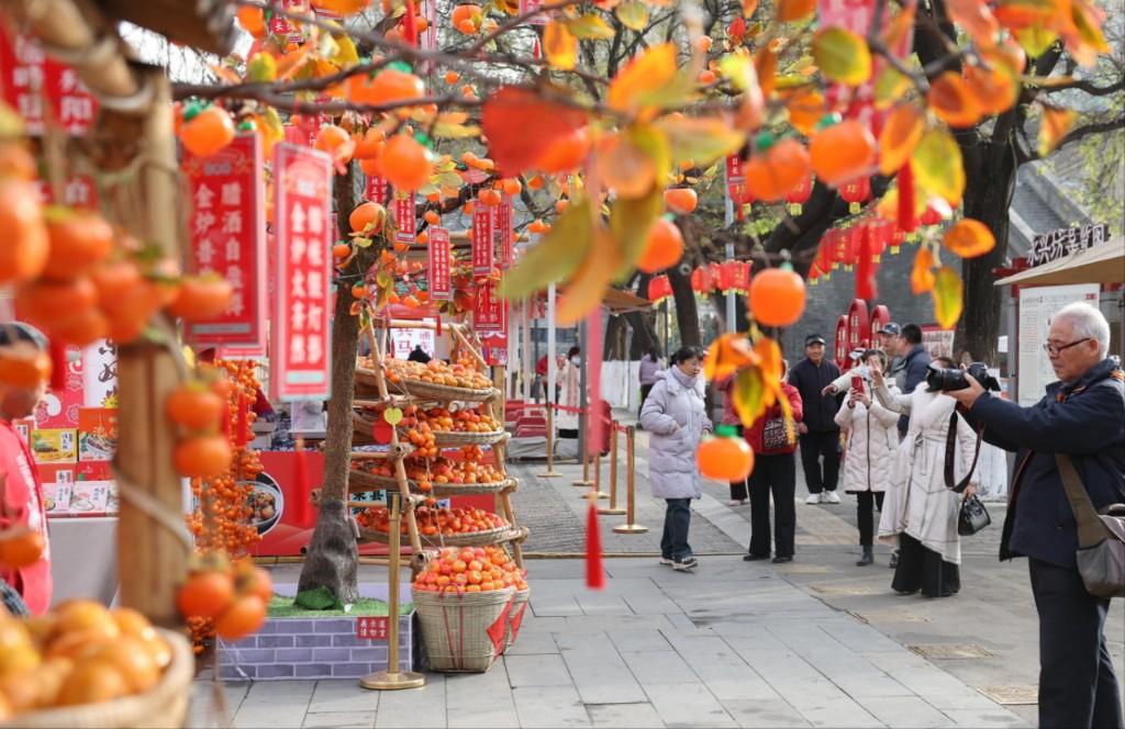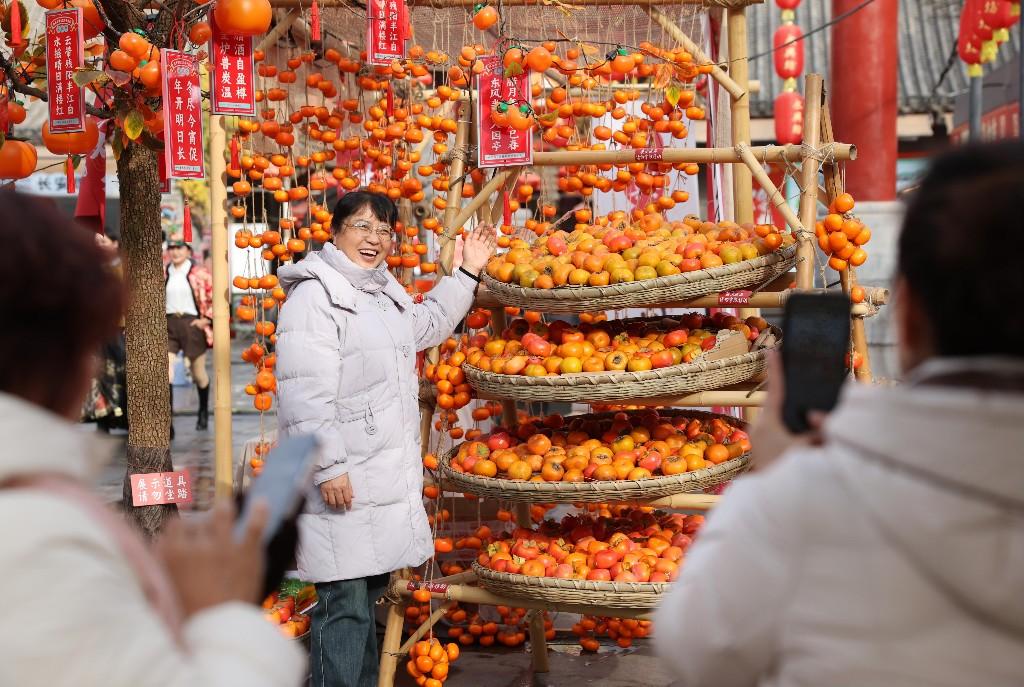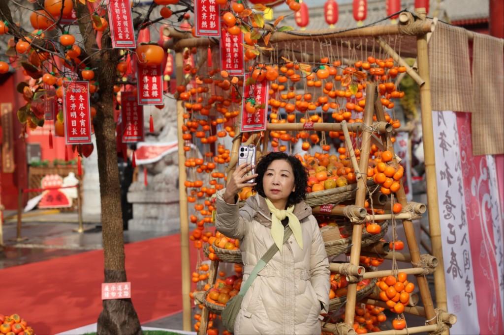 三秦都市报-三秦网讯(记者 代泽均)12月23日,西安永兴坊景区摆放了大量柿子,一串串红彤彤的柿子挂满枝头,营造出浓厚的冬日氛围,吸引了众多市民、游客拍照打卡。游人穿梭其间,定格这份独属于西安的冬日浪漫,成为古城街头一道风景线。