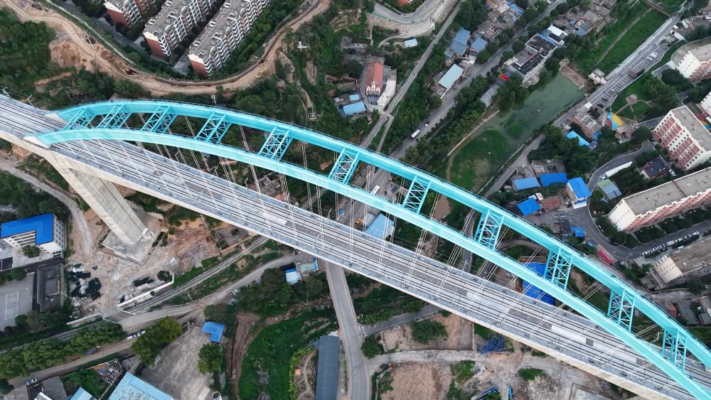 位于铜川市王益区的王家河特大桥全长1066.7米,主跨采用了混凝土连续刚构加拱组合结构,有效提升了结构刚度,实现了列车高速运行的平顺性。大桥105米的桥高与248米的主跨,使之成为目前国内高铁无砟轨道同类型桥梁中,跨度与高度的“双料冠军”。