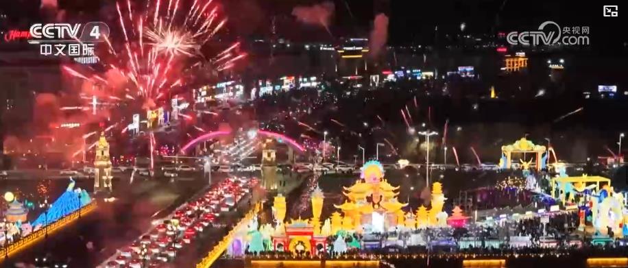 同时,在内蒙古兴安盟科右前旗的归流河畔,一场主题灯会的40组大型灯组沿河布展,点亮了冬夜。