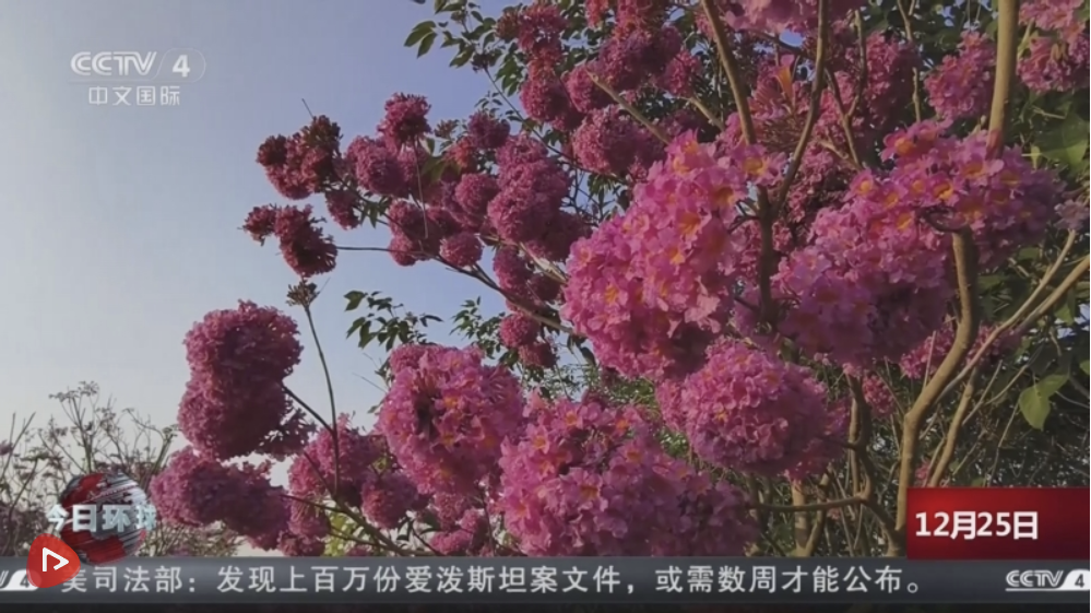 在广西南宁青秀区长塘镇,百亩紫花风铃木进入盛花期,粉紫色的花朵在枝头绚丽绽放,梦幻的粉色花海吸引了众多市民游客前来打卡游玩。